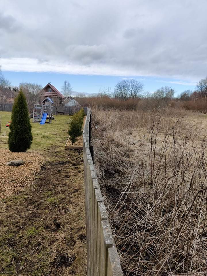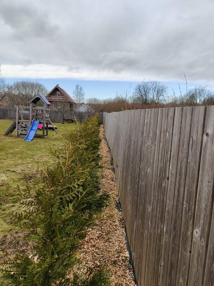 Vana aia ja postide eemaldamine ja uute postide paigaldus vundamendiga 1000 mm ja vana aia tagasi paigaldamine.