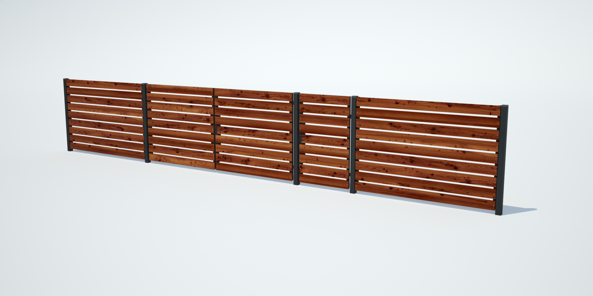Horisontaalse Aia kogupikkus ~ 35m, Kõrgus 1,5m, Tiibvärav 4m, Jalgvärav 1m. Materjalid: Immutatud puit laudis ( ühekordne, hööveldamata aialipid 22x100mm), Metall (kuumtsingitud) postid ja värava raamid (valmidus automaatikaks), Pinnas: kerge liivane.