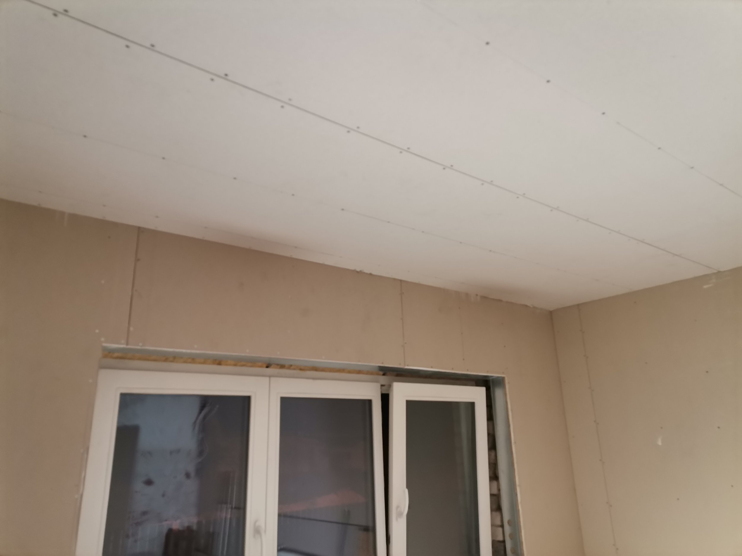 2. Kipsseinad pahteldada,värvida- kokku koos ukse ja aknaga 41m2, ilma 37m2