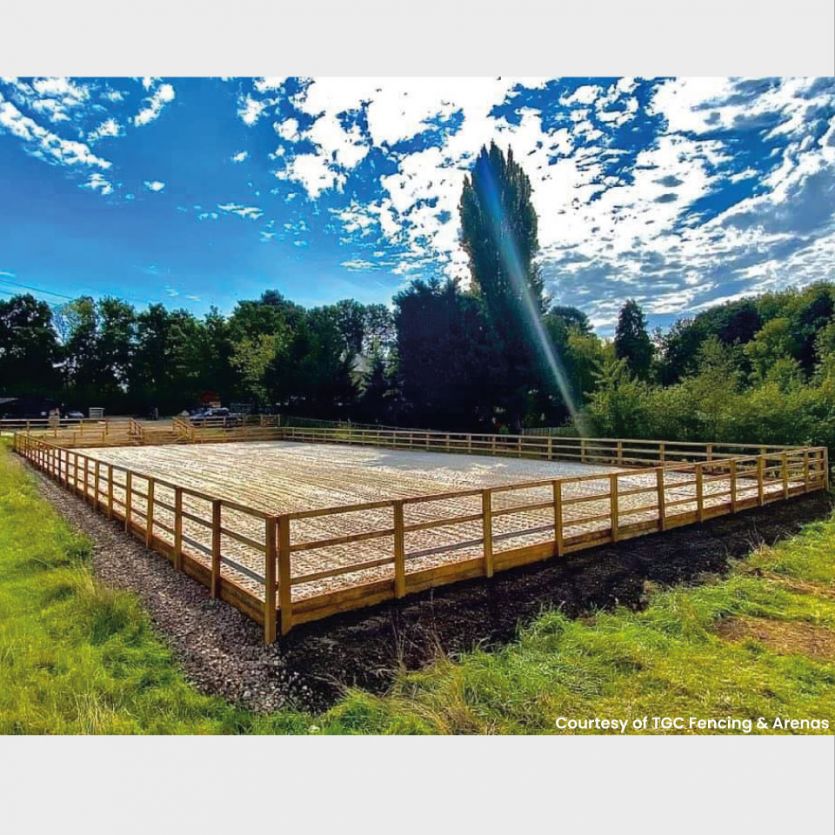 1) Koorida pinnast ca 50-70cm, tuleb teha hästi väike kalle, et vesi ära voolaks. Pinnase äravedu ei ole vaja teostada (aga võib lisada pakkumisele). Lisaks kaevata kuivenduskraav platsi kõrvale ja väike teerada, et hobustega oleks võimalik platsile minna (ca 3x5m).