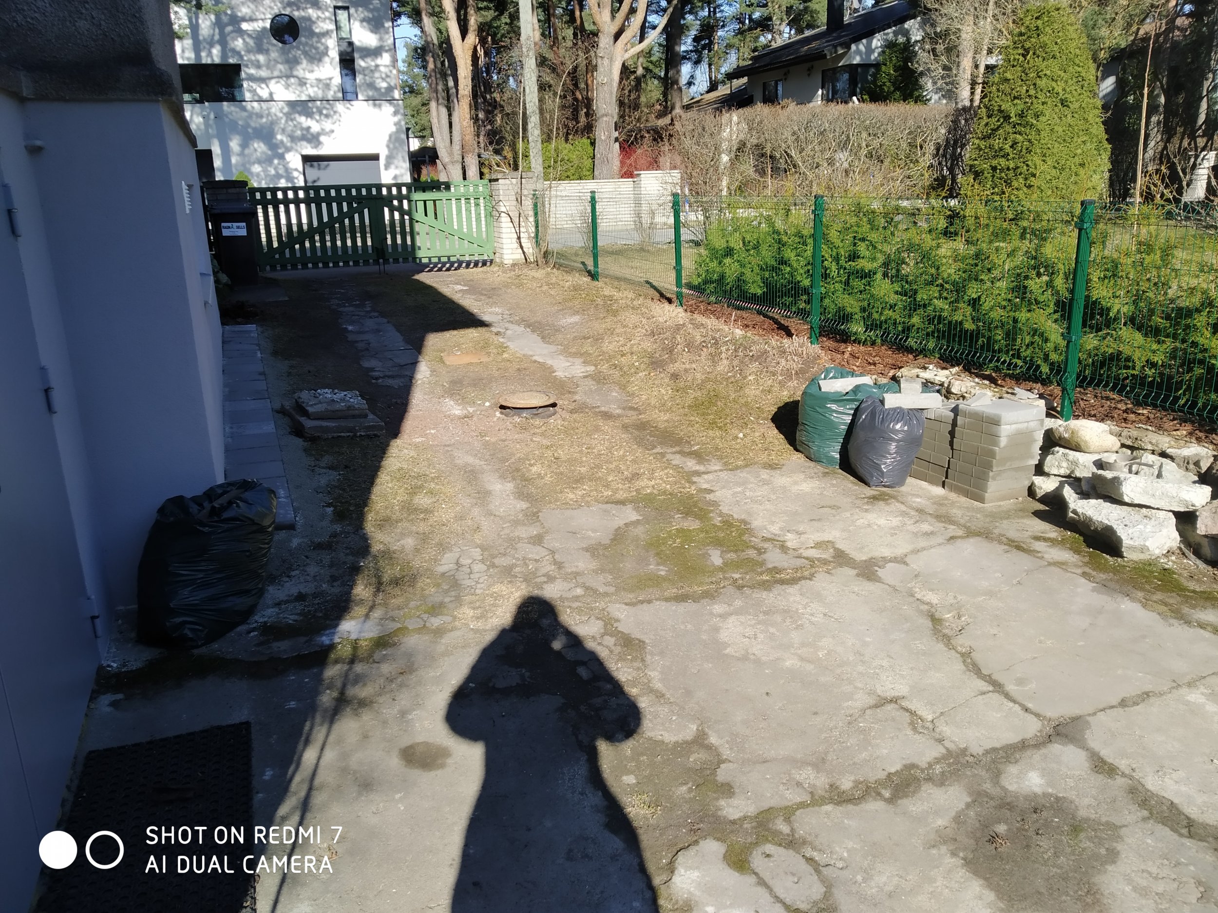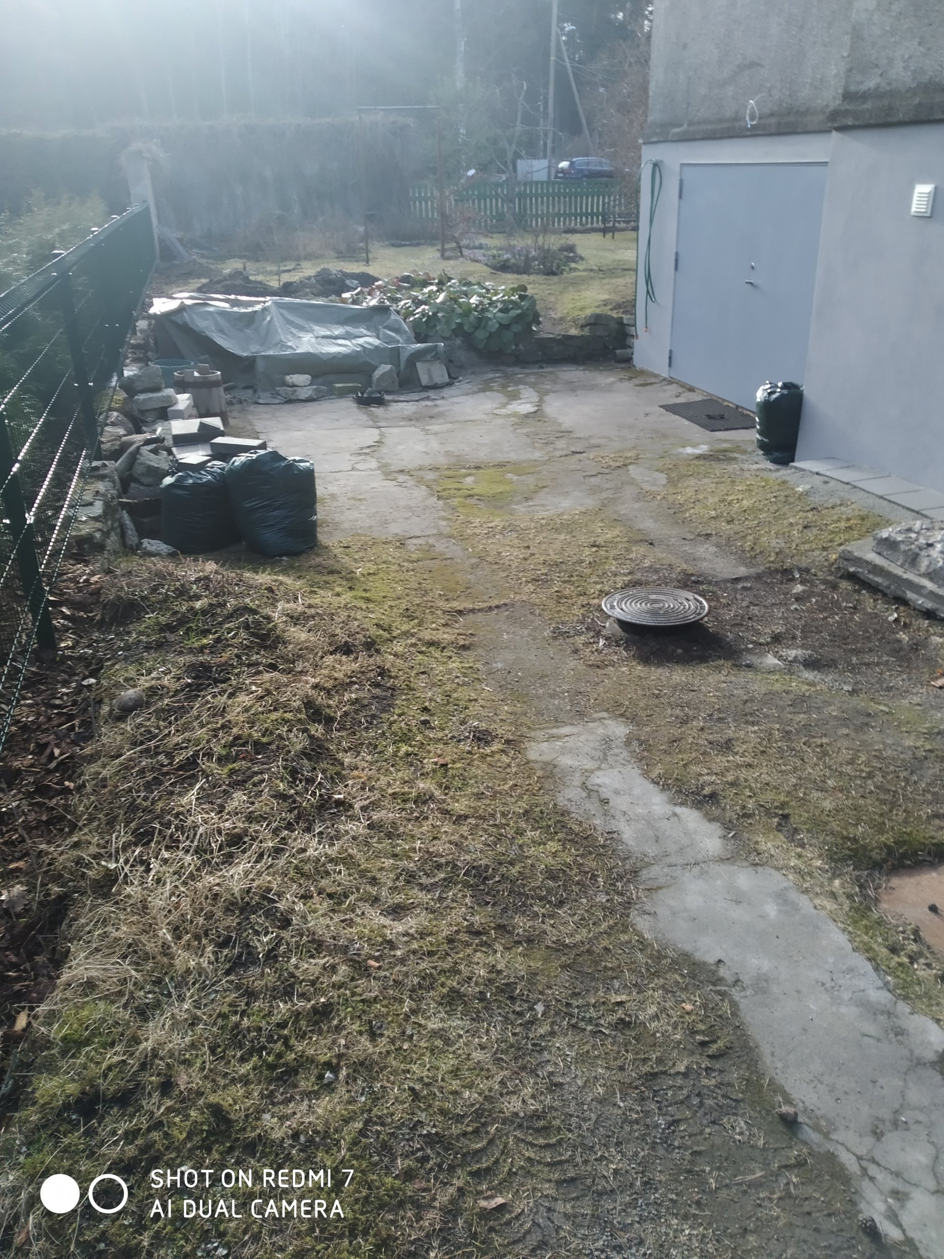 Pinnase koorimine ja äravedu - osaliselt betoon ja killustik, osaliselt mättad ja muld. (Aluspinnaseks on liiv).
