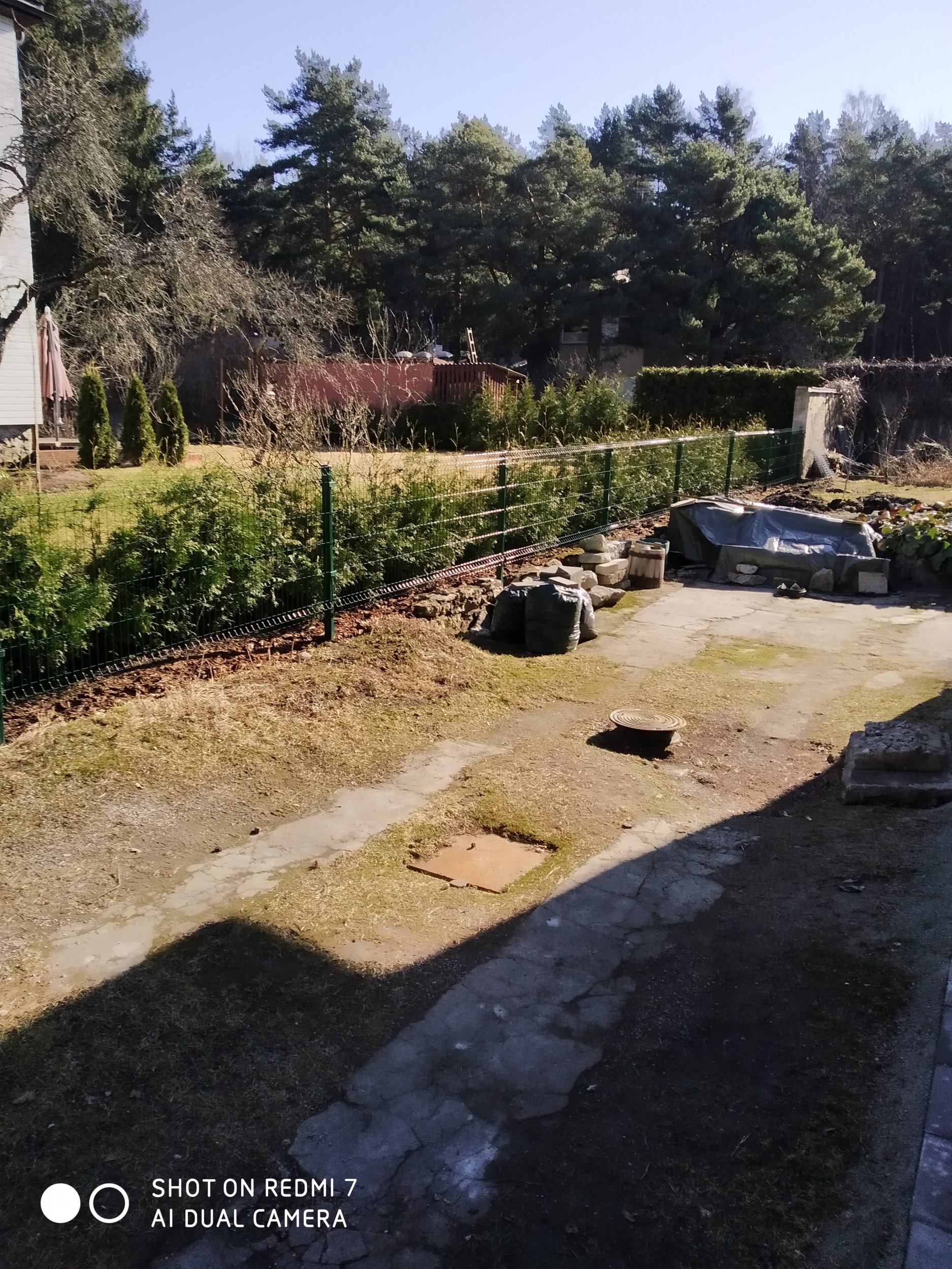 Naaberkinnistu eraldamine äärekiviga.