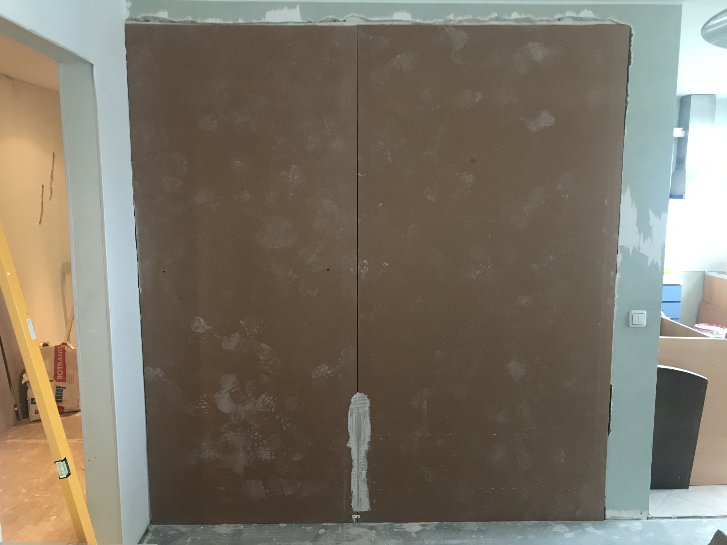 Seinas on kaks kipsplaati perflixi seguga ja mõnede kruvidega . Oleks vaja edasi teha . Krohvida ? Pahteldada . Värvida võin ise . Ja tapeeti sealt äärtest ei õnnestu eemaldada . Ettepanekud oodatud .