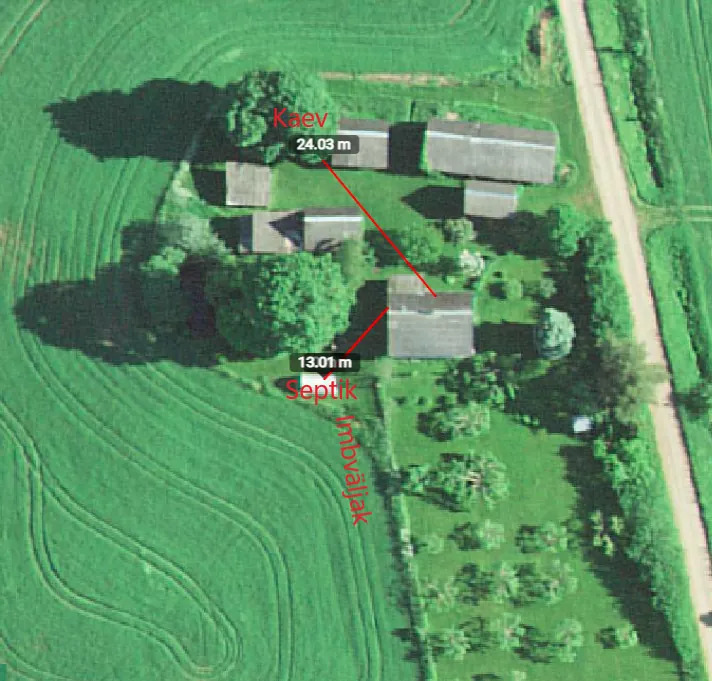 Vee toomine majja ja septiku paigaldus imbväljakuga. Majast kaevuni 24m, majast septiku asukohani 13 m.