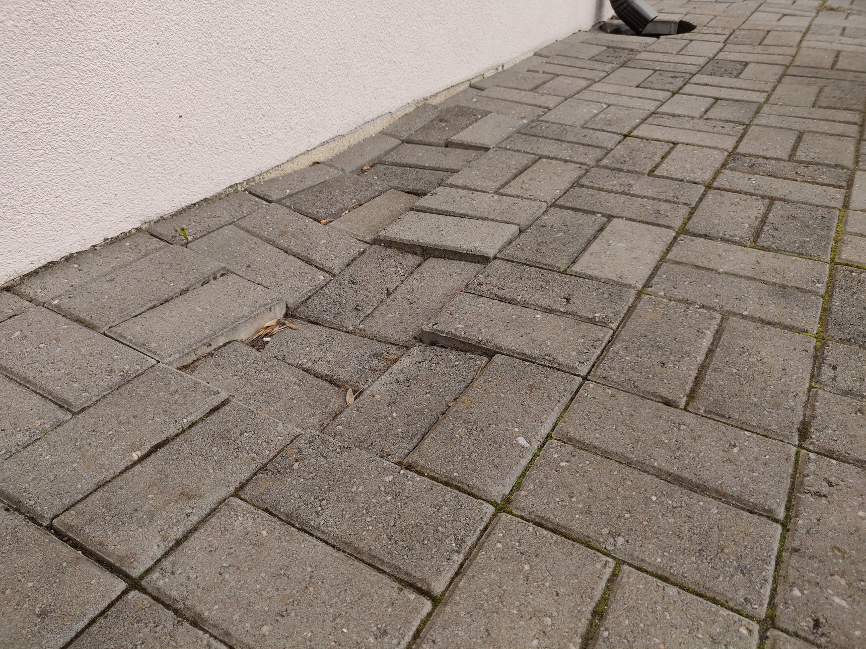 ~1m² tänavakivi on maja juures peale talve alla vajunud (vt pilte). Vaja tõsta, parandada alus ja uuesti paigaldada.