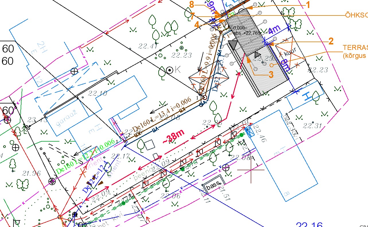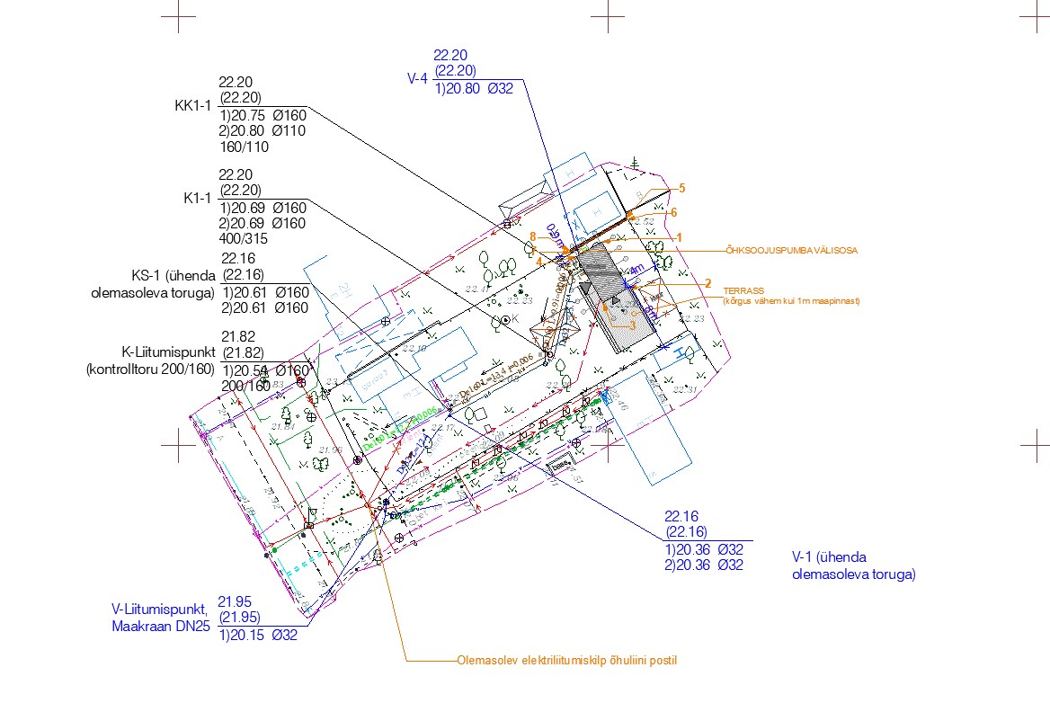 Projekt on koostatud eeldusel, et olemasolev krundisisene kanalisatsioonitorustik on 160 torudest, kui tööde käigus selgub, et see nii ei ole tuleb asendada olemasolev torustik nõuetekohasega.