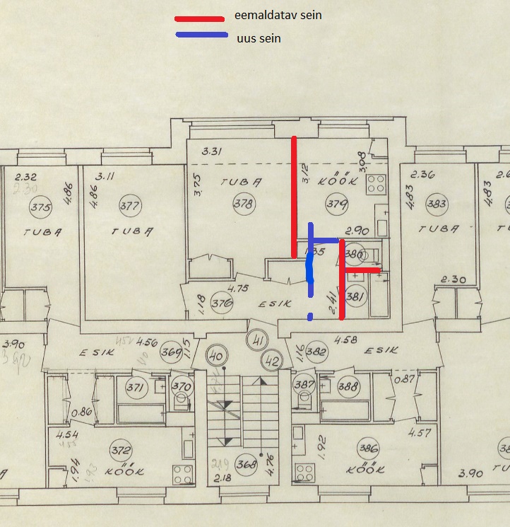 - vana malmvanni eemaldus ning uue vanni ning vanniseina paigaldus, uus tualettpott (poti asukohta ei muuda, kuid muud veetorud (vann, kraan, pesumasin) nihkuvad teise seina)