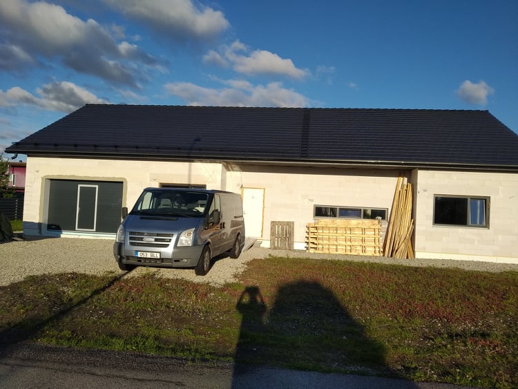 Ühekordse maja välisfassaadi krohvimine. Maja seinad on AEROC 375.
