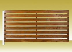 Materjal tellijalt. Immutatud puidust horisontaalse laudisega piirdeaed. Tiibvärav ning jalgvärav. Tsingitud postid betoneeritud pinnasesse. Omame kogemusi üle 12a