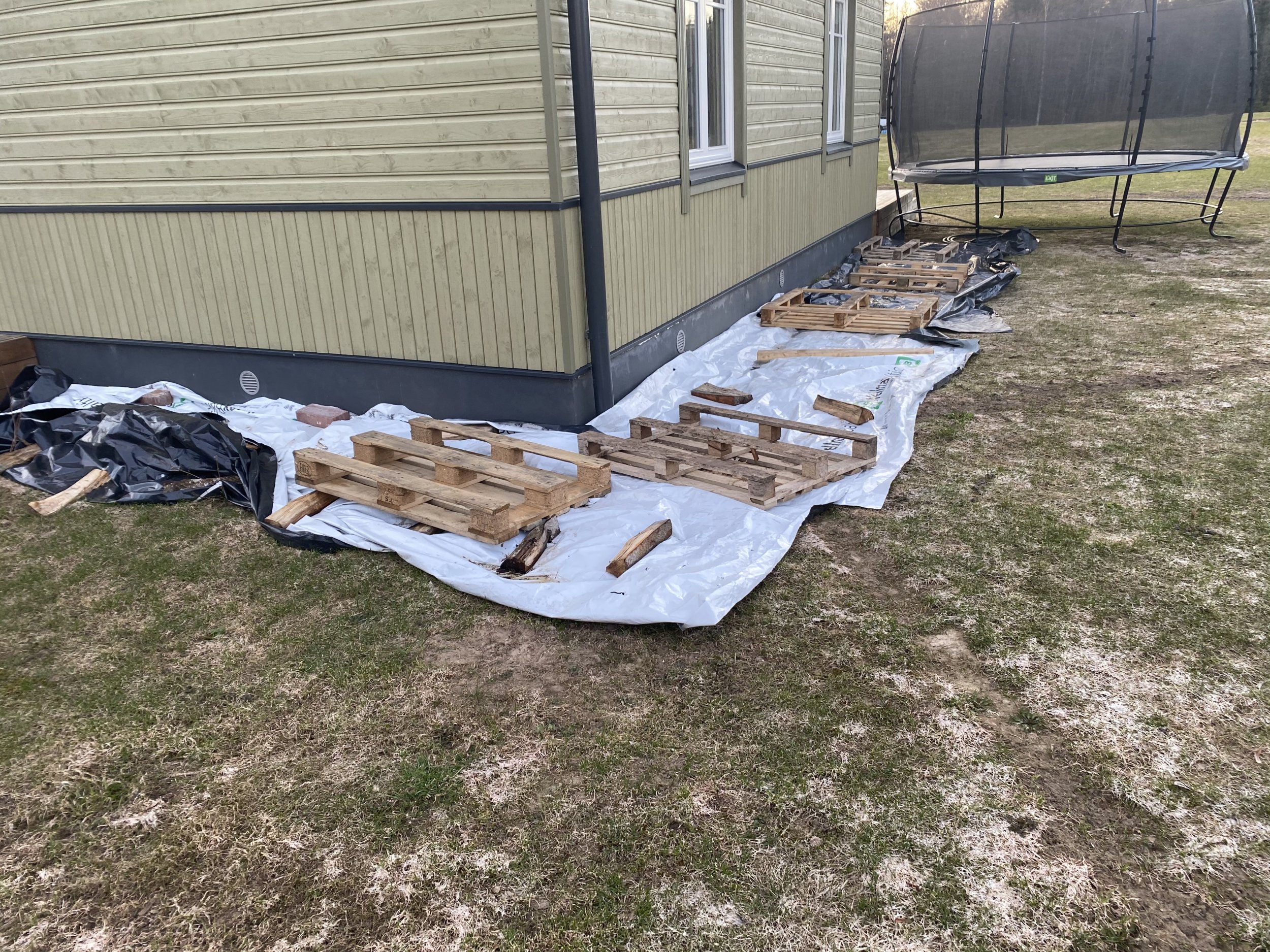 Maja ümber tuleb paigaldada tänavakivid 50cm laiuselt ja 1m laiuselt. Paigalduseks tuleb eelnevalt eemaldada murukamar. Kivid paigaldada liiivale ning kivide vahed täita peene paekivikillustiku või paekivisõelmetega. Paigaldatav kogus: