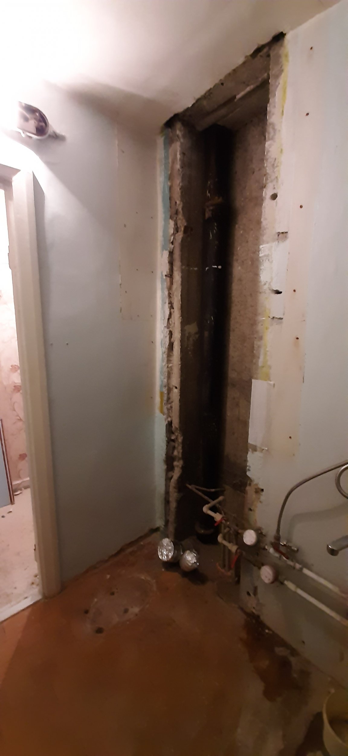 * Püstaku avaust (ja seina üldiselt) katab metallkarkassist sein (ilma seinakatteta (tuleb knauf green kips + ker. plaat)), mille seest kulgeb torustik jms;