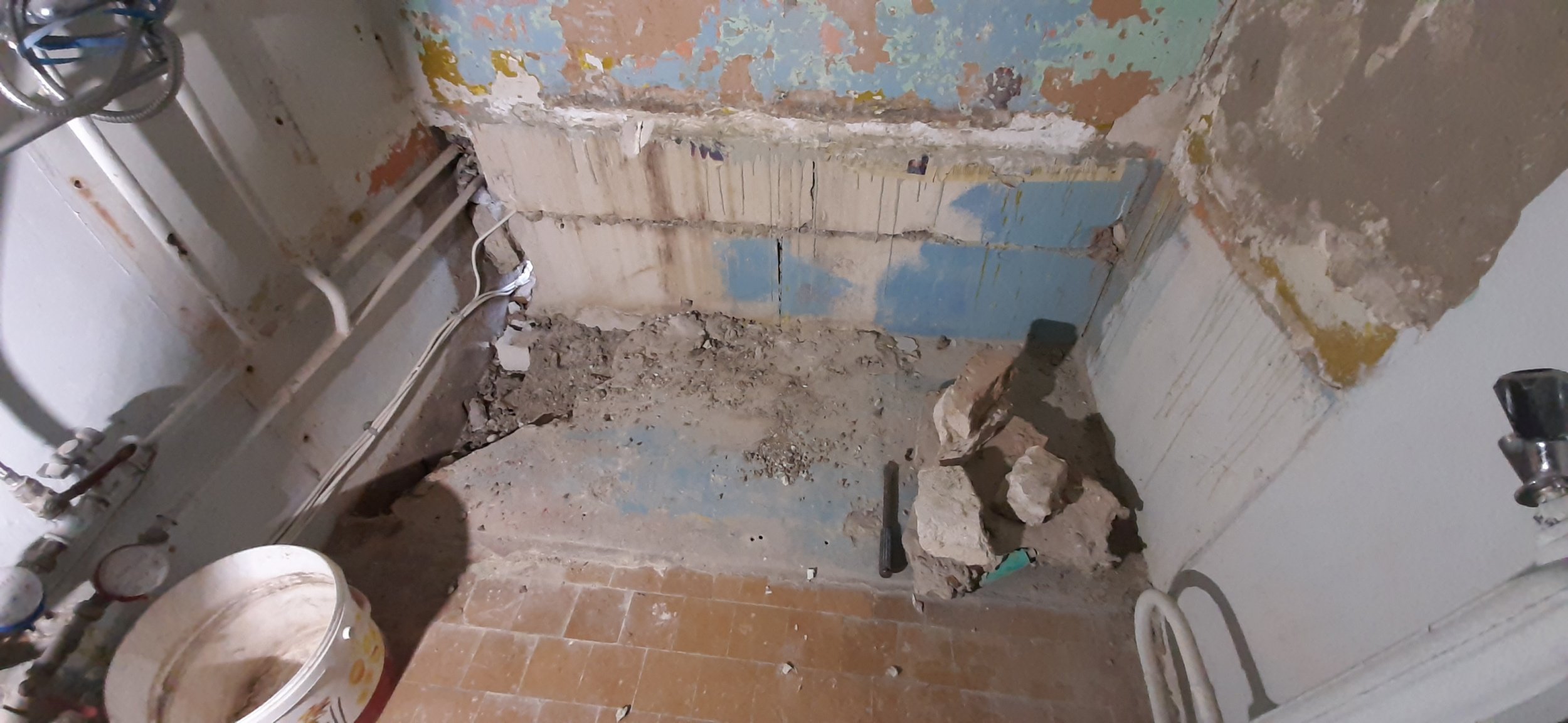 Vannitoa lae alt jooksevad uued elektrikaablid (kööki ning vannitoa laevalgustus);