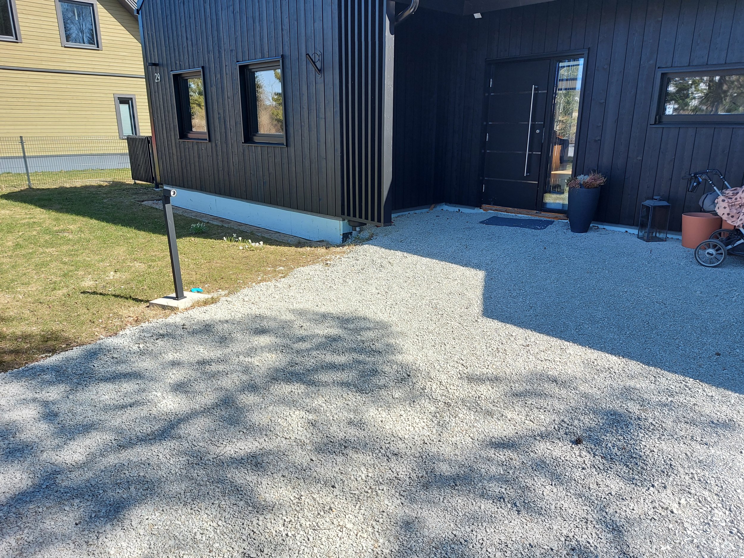 Kuna töös on mõned lahtised otsad siis toon vajalikud tööd eraldi välja. 1. Killustiku õigele kõrgusele viimine, tihendamine, paigalduskiht, transport, vajalik tehnika ja kõik vajalik töö kuni lõpuni on 15.00 euri m2. 2. Äärekivi paigaldus koos betooniga 12.00 euri jm. 3. Betoon ääred 2.00 jm Pildilt ei tundu, et killustikku oleks vähe, pigem kohati rohkem. Kogemus 24 aastat, töödele garantii. |