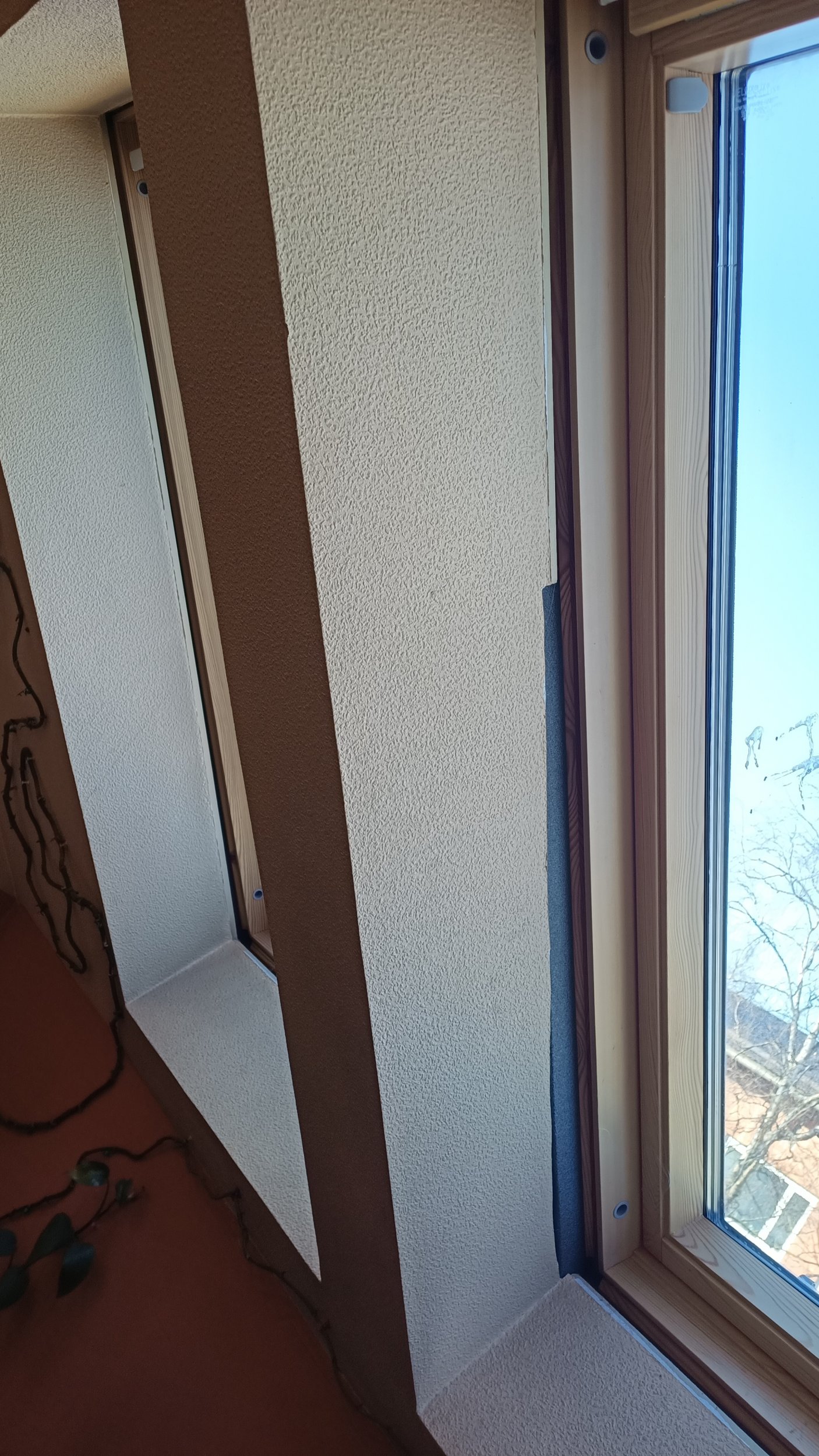 Kaks akent paaris, ava mõõt 72x140, sügavus 26. Võtta vana kips maha, uus aurutõke, uued paled, pahtel + valge värv. Värvida vaja siis paled ja 5-10 cm "raam" ümber akende.