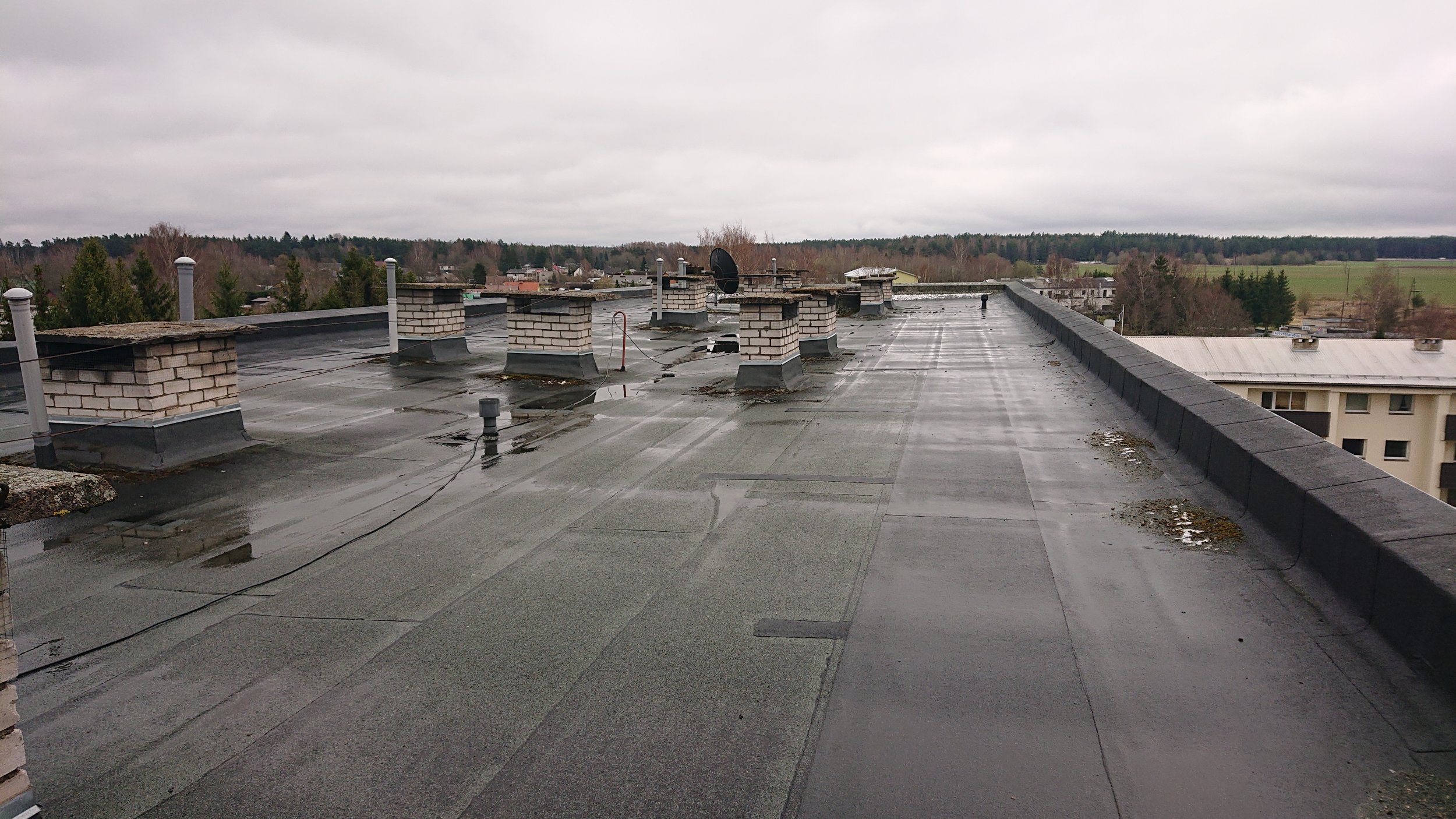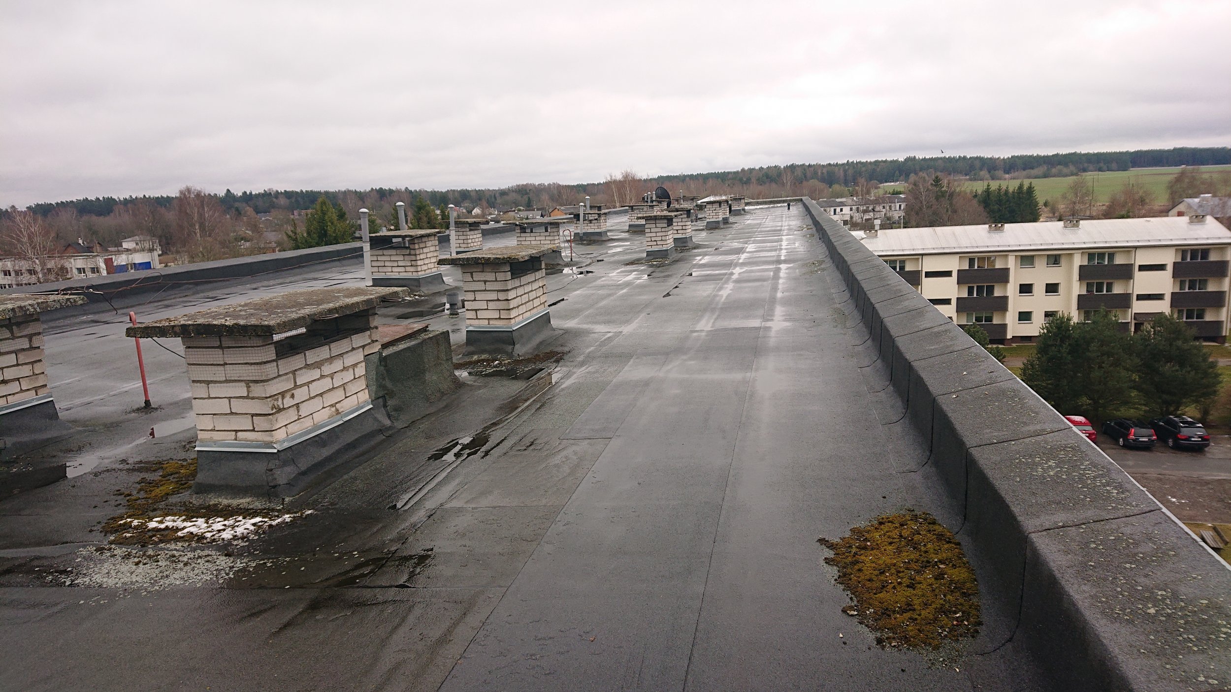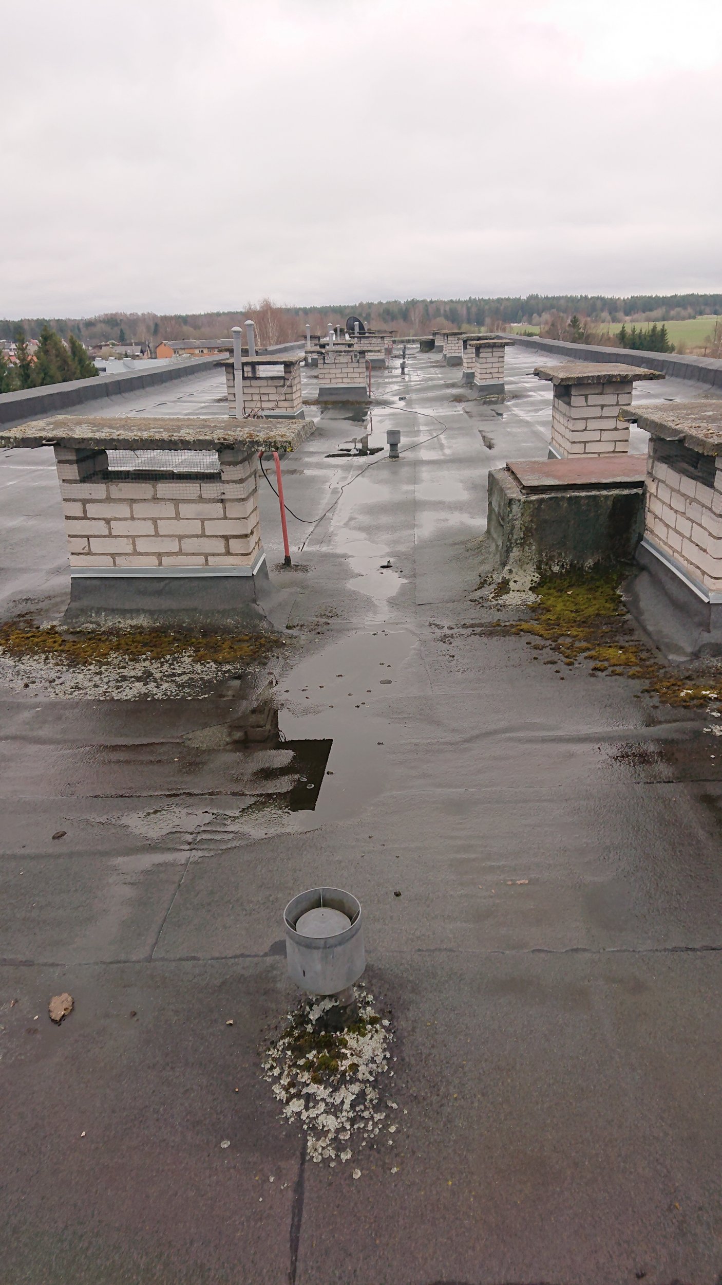 60 korteriga viie trepikojaga kortermaja katuse soojustamine. Maja on ehitatud kaheksakümnendate alguses ja fassaad on renoveeritud. Hetkel katuse soojustuseks 5cm vahtplasti + 5 villa. Sellele oleks vaja lisada vähemalt 200mm soojustuskiht plus uus katusekate.