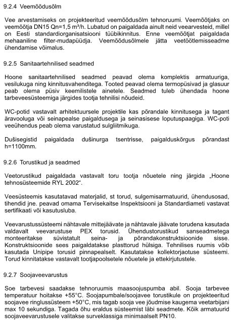 Hinnapakkumine sisaldab eramaja kütte, ventilatsiooni ja jahutuse põhiprojekti (maht vastavalt EVS 932 "Ehitusprojekt") koostamist vastavalt Tellijalt soovidele ja seadustele/määrustele/standarditele. Pakkumine sisaldab torustike dimensioneerimist, seletuskirja, spetsifikatsioone jms (vastavalt ehitusprojekti EVSile). Töödega alustamisel palume ette anda hoone korruse plaani dwg joonise. Orienteeruv teostamise aeg 2-4 nädalat peale hanke võitjaks kuulutamist ja vajalike materjalide jagamist. On olemas pikaajaline töökogemus veevarustuse, kanalisatsiooni, kütte, ventilatsiooni ja jahutuse projekteerijana. Olemas vastavad kutsed ja MTR registreeringud. Hind sisaldab vastutava spetsialisti poolt digitaalselt allkirjastatud projekti, ei lisalda projekti esitamist paberkandjal. Vajadusel saab hiljem läbi rääkida ka veevarustuse ja kanalisatsiooni projekti koostamises. Hinnale ei lisandu käibemaks. Lugupidamisega Võimalik projekteerija |