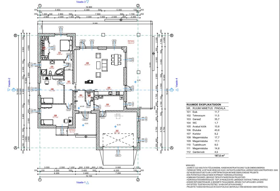 Hinna sees hoonesisesed osad (küte, ventilatsioon, jahutus, veevarustus ja kanalisatsioon) põhiprojekti mahus. Hoonevälised osad ei ole hinna sees. Tööde teostamiseks on vajalikud joonised dwg formaadis. |
