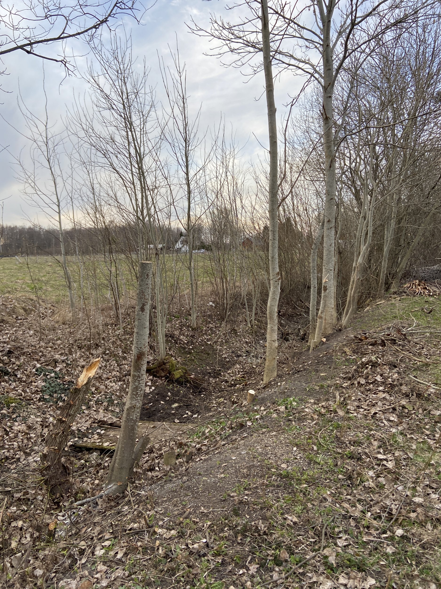 Kraavist kõik puud/võsa maha lõigata ja ära viia või purustada (lisaks juba maha saetud oksad), kraavi pikkus 40m, osa kraavist on juba puhastatud ning hõredam. Suuri puid palju ei ole.