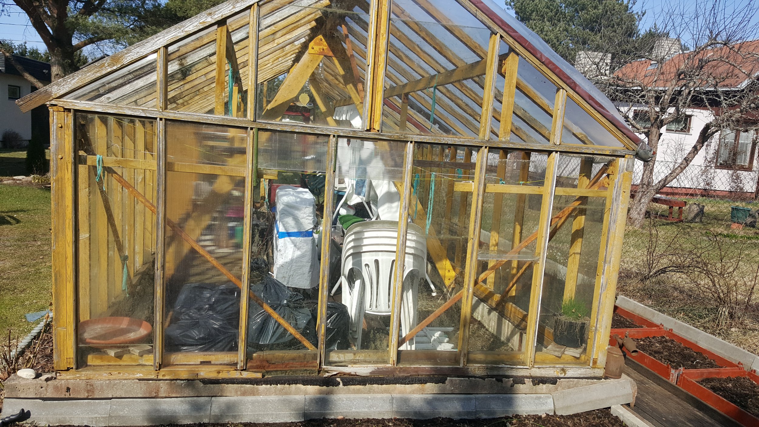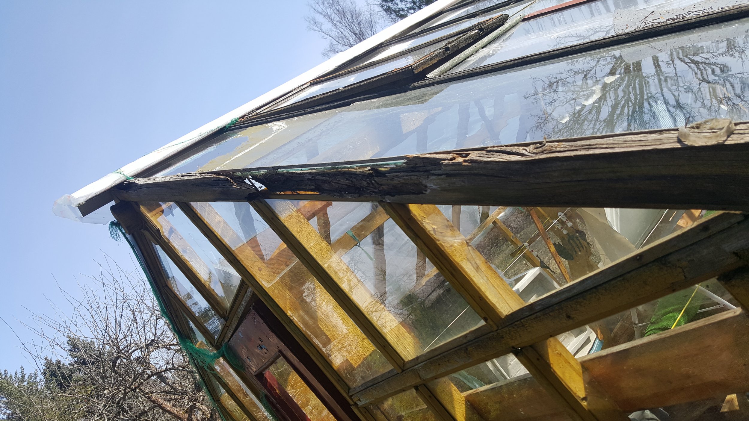 Vana klaasidega kasvuhoone puitkonstruktsiooni parandamine (alumine vöö on osaliselt pehkinud ja vajaks uut). Klaaside asendamine, värvimine jne.