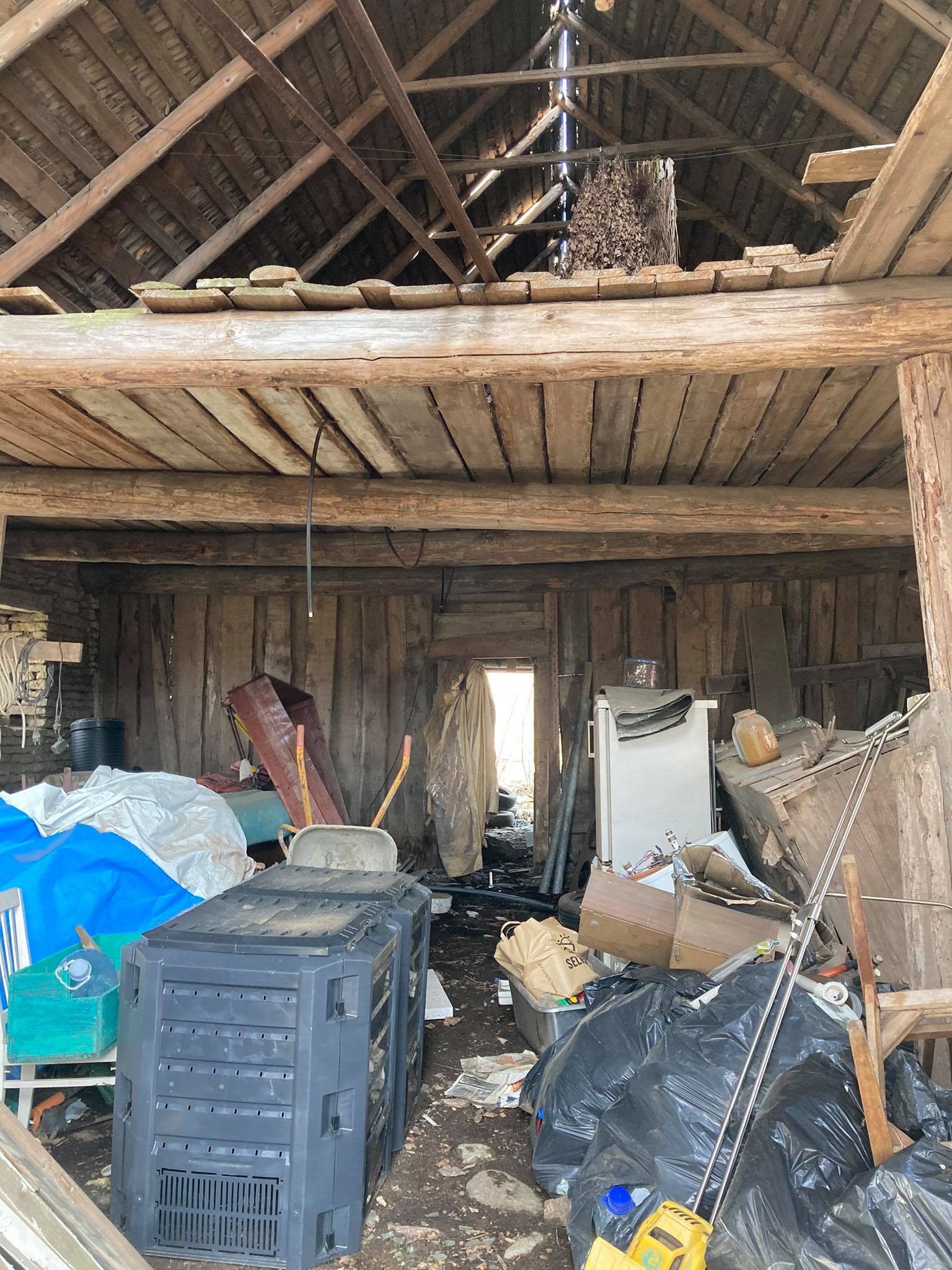 Abihoone seest ja abihoone ümbrusest vaja praht kokku korjata ja ära vedada. Lammutada katus. Hoone suurus on 16mx9m. Katus on eterniitkatus, mille all on puitlaastkatus.