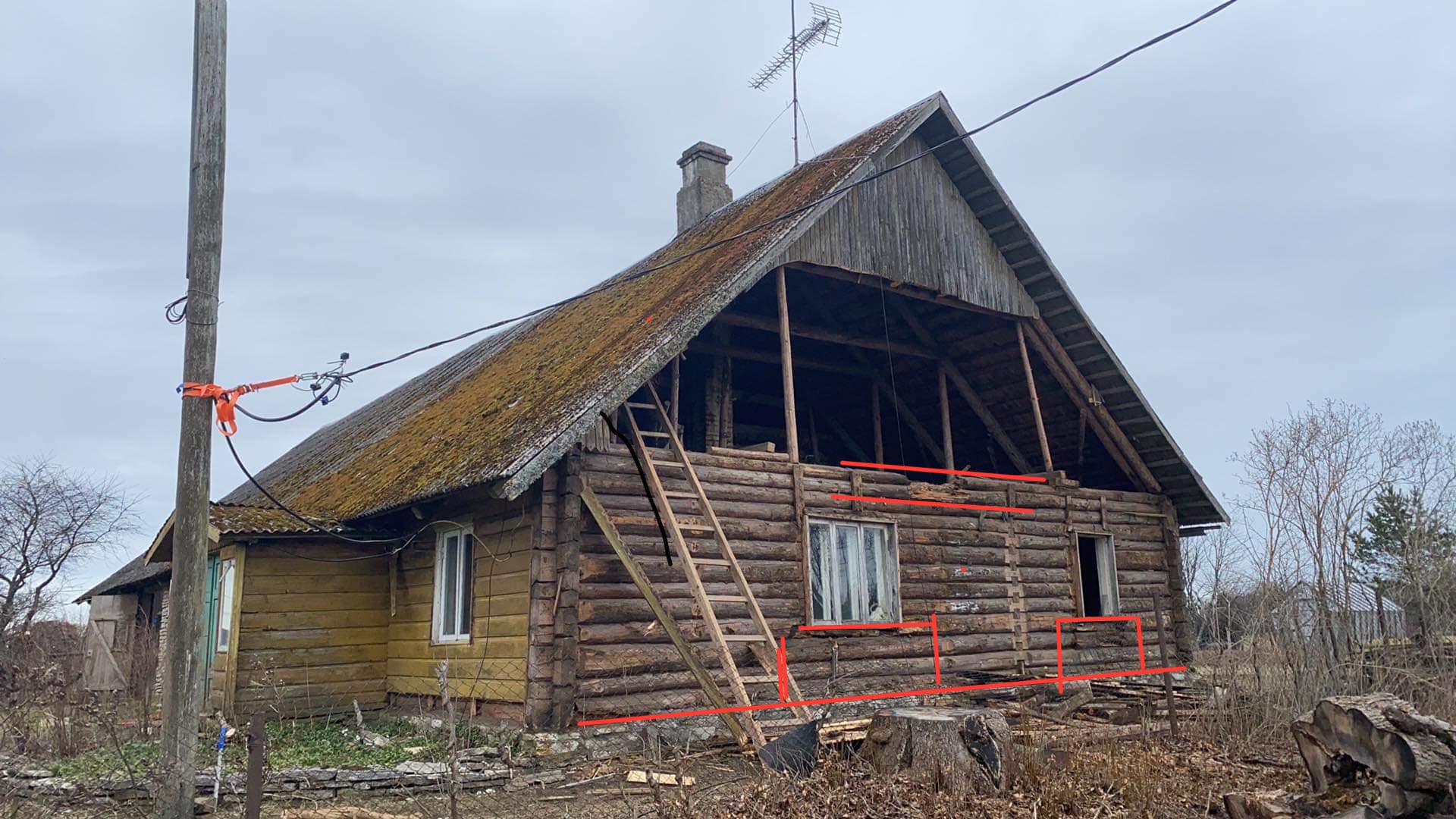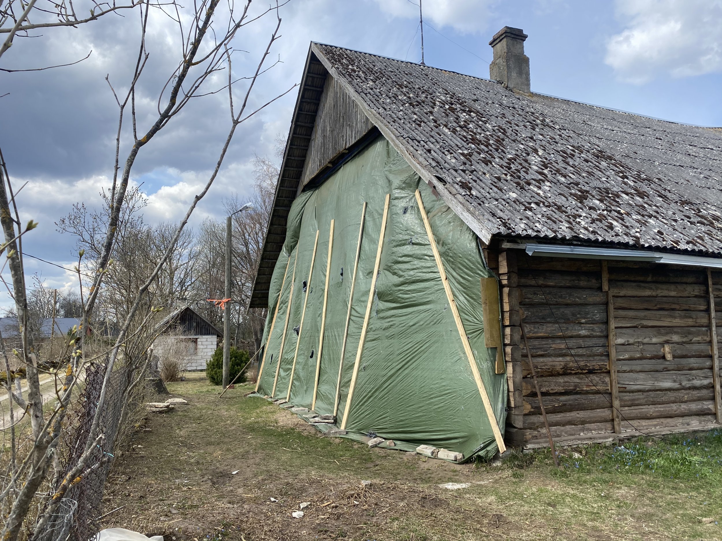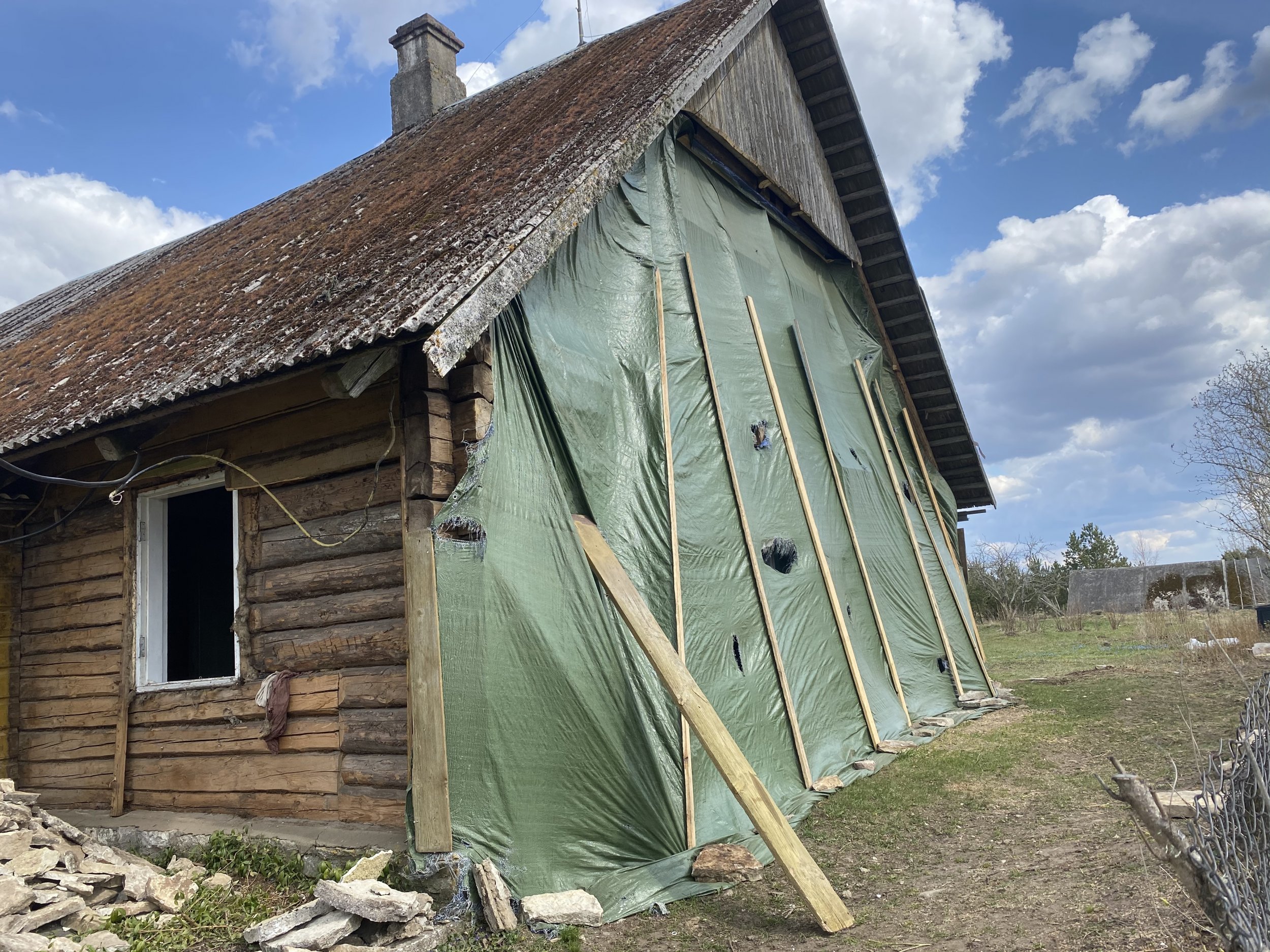 Palkmaja otsaseina vundamendi tasandusvöö valamine ,alumise palgi asendamine fibo plokiga täies otsaseina ulatuses+ 2 akna aluse asendamine fibo vastu kuni vana akna kôrguseni
