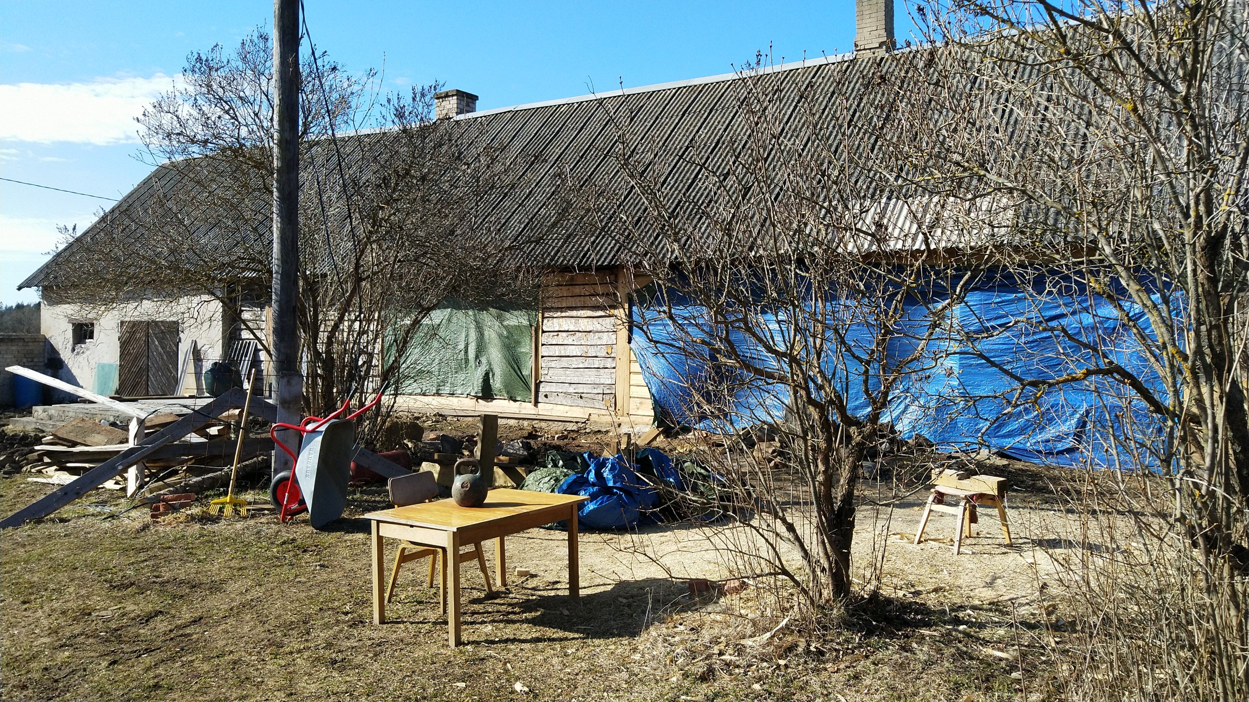 Üks töö on talumaja ümbert pinnase koorimine ja kerge kallaku tegemine majast eemale. Lisaks maakivid ja muld umbes 50 m kaugusele vedada, veetrassi kaevamise hunnikud laiali lükata. Pindala umbes 400 ruutmeetrit.