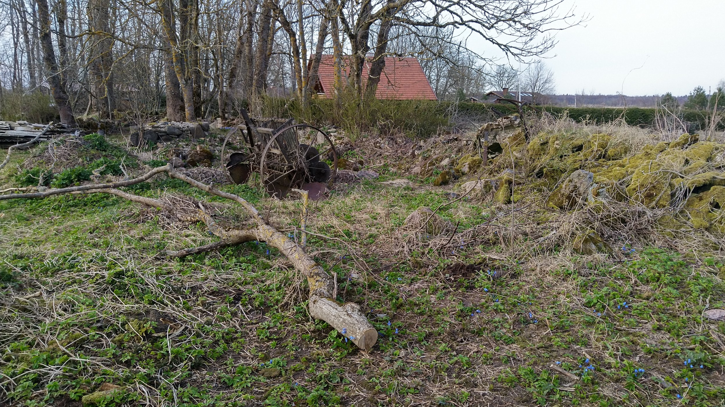 Teine töö on vanade kivimüüride vahel maapinna tasandamine, seal hulgas mullahunnikute laiali lükkamine, mõne puujuure-kännu välja juurimine, maakivide ühte hunnikusse korjamine.