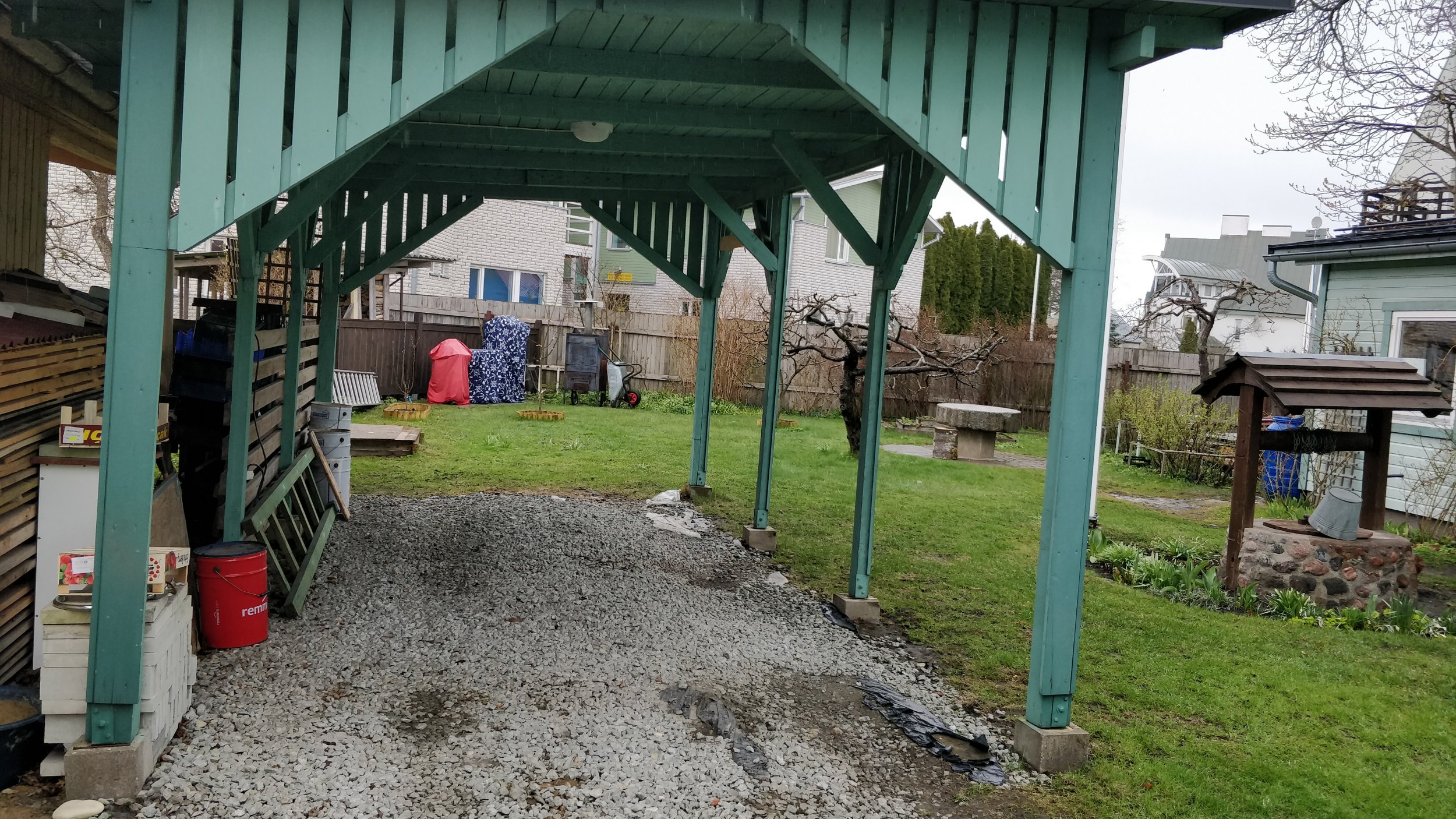 Eramaja hoovi sissesõidutee ja auto katusealusele tänavakivi ca 76m² paigaldus koos äärekiviga ca 37 jm, maja ümber tänavakivi ca 25m² paigaldus koos äärekiviga ca 21 jm ja kõnnitee rajamine hoovi ca 12m² tänavakivi koos äärekiviga ca 26 jm. Tänavakiviks hall Mungakivi. Vajalik on pealmise pinnasekihi eemaldamine ja killustiku ja liivapõhja ehitus. Pakkumises näidata erinevate osade aluskonstruktsiooni kihtide paksus. Hind peaks sisaldama kogu tööd, alates vana pinnase eemaldamisest ja utiliseerimisest ning kõiki vajalikke materjale.
