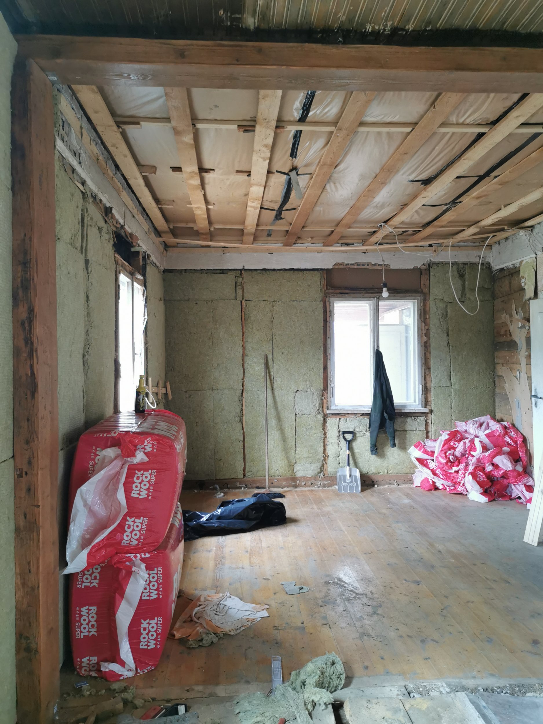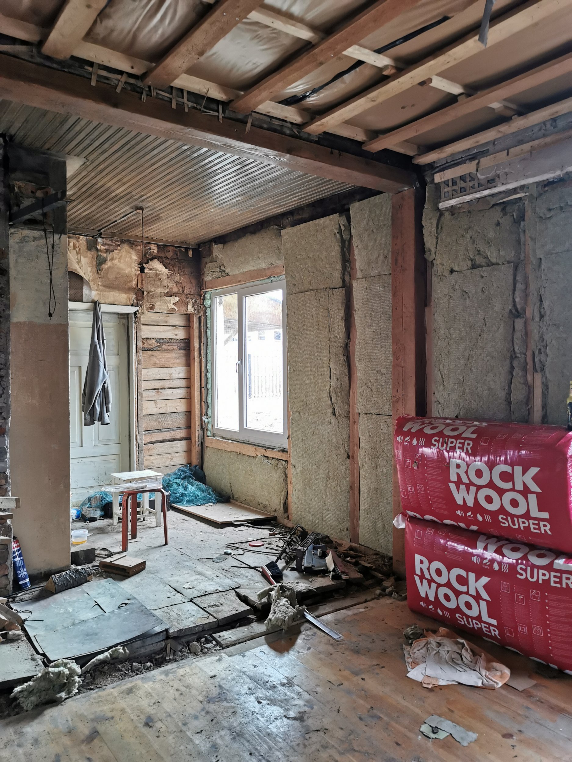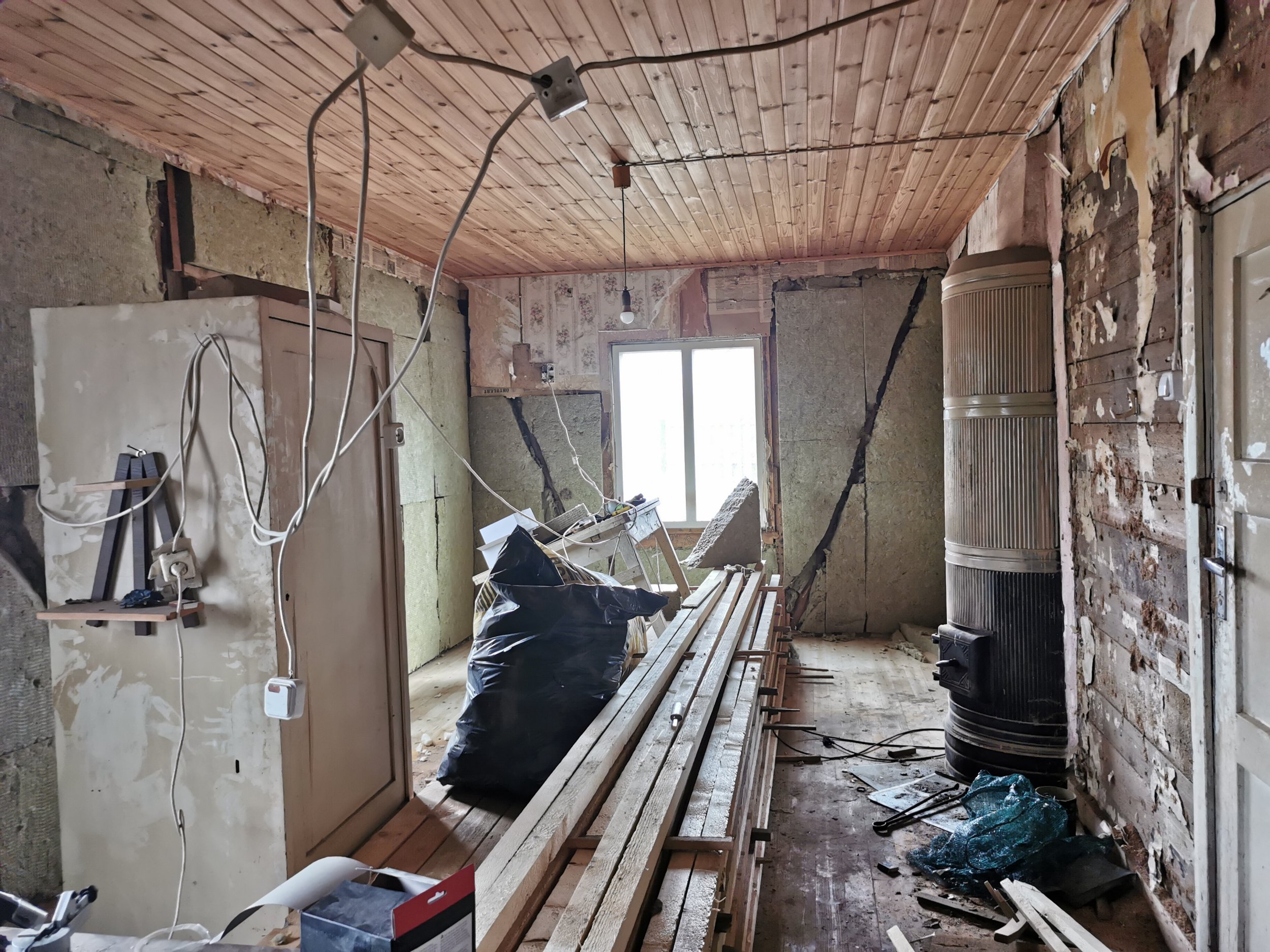 Maja esimese korruse seinte sirgeks ajamine, kipsi paigalduseks karkassi ehitus.
