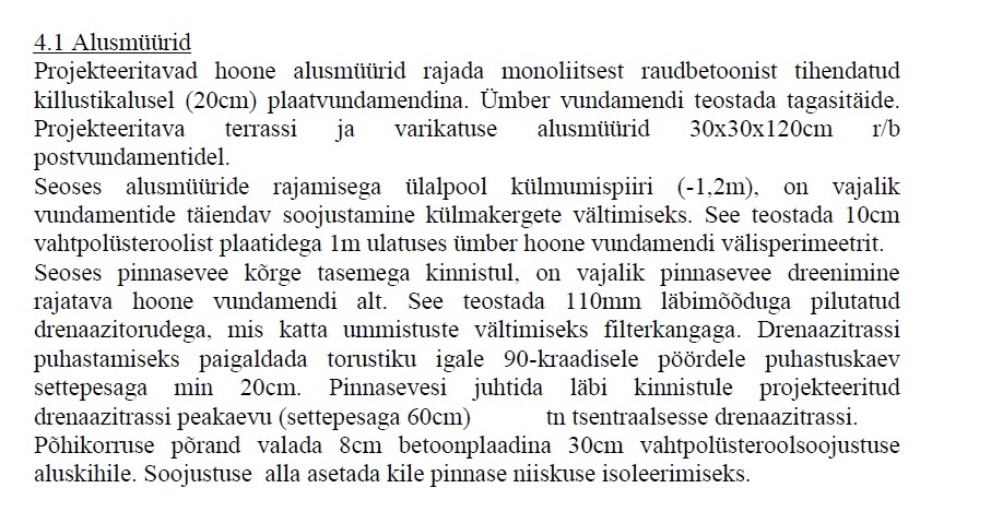 Vundamendi sisse projekteerida vee ja kanalisatsioonitorud ja ka põrandasoojustus torud, jagada need eraldi reguleeritavateks tubade kaudu.