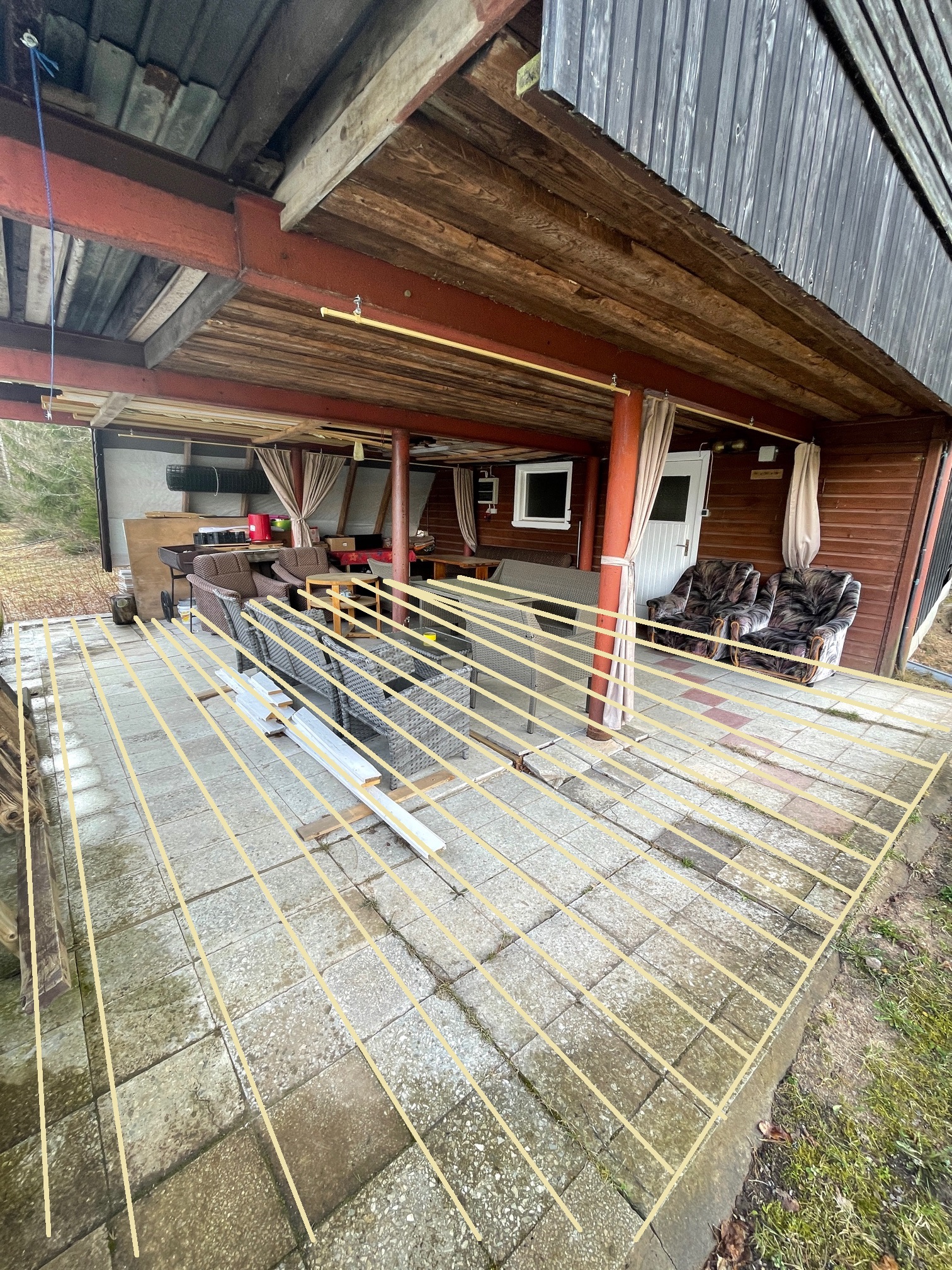 Terrassi ehitus 52m2(pildil olevad plaadid utiliseerida,pinnast peab ka madalamaks võtma.Pinnase saab objekti jätta.paigaldada kandurid ja karkass 400mm sammuga.Terrassilaud 26x120mm,immutatud pruun(rihvelpind)