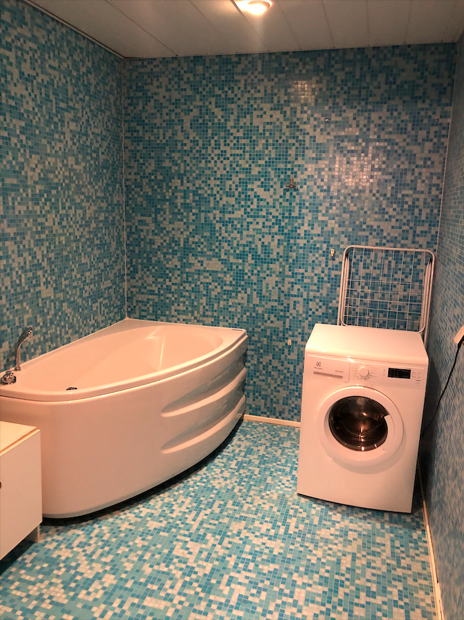Remont 2005. a ehitatud vannitoas (6,2 m2). Esmasel hinnangul oleks vaja mosaiikplaadiga plaaditud seinad ja põrand tasandada (esineb vajumist kuni 1cm), paigaldada niiskustõke ja uued keraamilised plaadid (plaaditav pind 22,6 m2), asendada santehnika uuega (vann+dušš, valamu, wc), liigutada veeühendusi (dušš samas seinas 1m eemale, pesumasin teise seina). Samuti vajaks vahetust vannitoauks. Palun võimalusel pakkumisse sisse arvestada tasandus- ja hüdroisolatsioonitöödeks vajalike materjalide hind.
