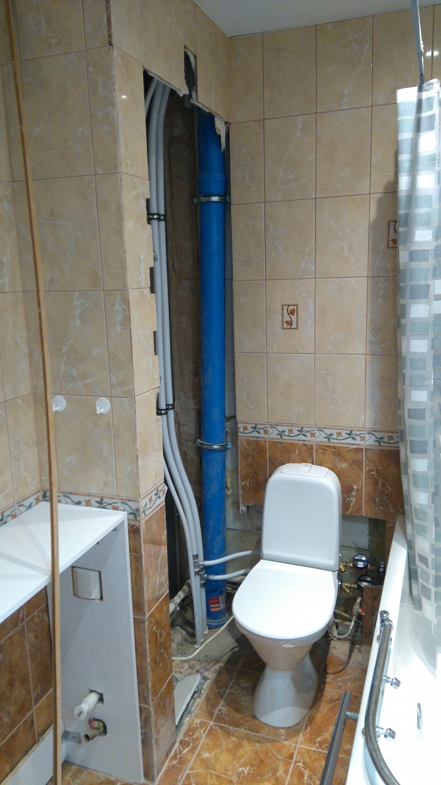 Kanalisatsioonitorude vahetamise järgselt vannitoa seinast osa lõhutud. vaja ehitada uus sein, plaatida. Uue nurga seina üks tasapind peaks liikuma sügavamale, et siugtoru jääks vannituppa sisse, mitte nn seina taha. Sellega seoses on vaja veel maha võtta osa vanast eenduvast seinast, lisaks vajab ka ripplagi poole vannitoa ulatuses ümber tegemist. Lisaks läbi uue seina pesumasina peale- ja äravoolu toomine.