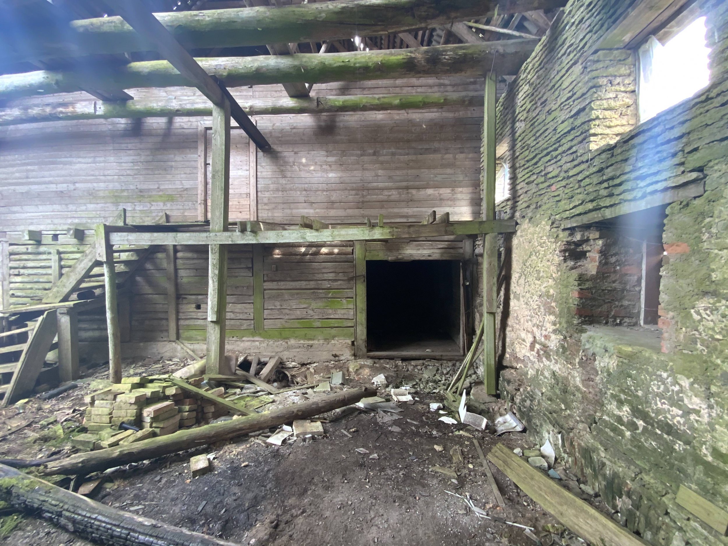 1. Eemaldatakse hoone puitosad nagu uksed ja puittrepi osad.