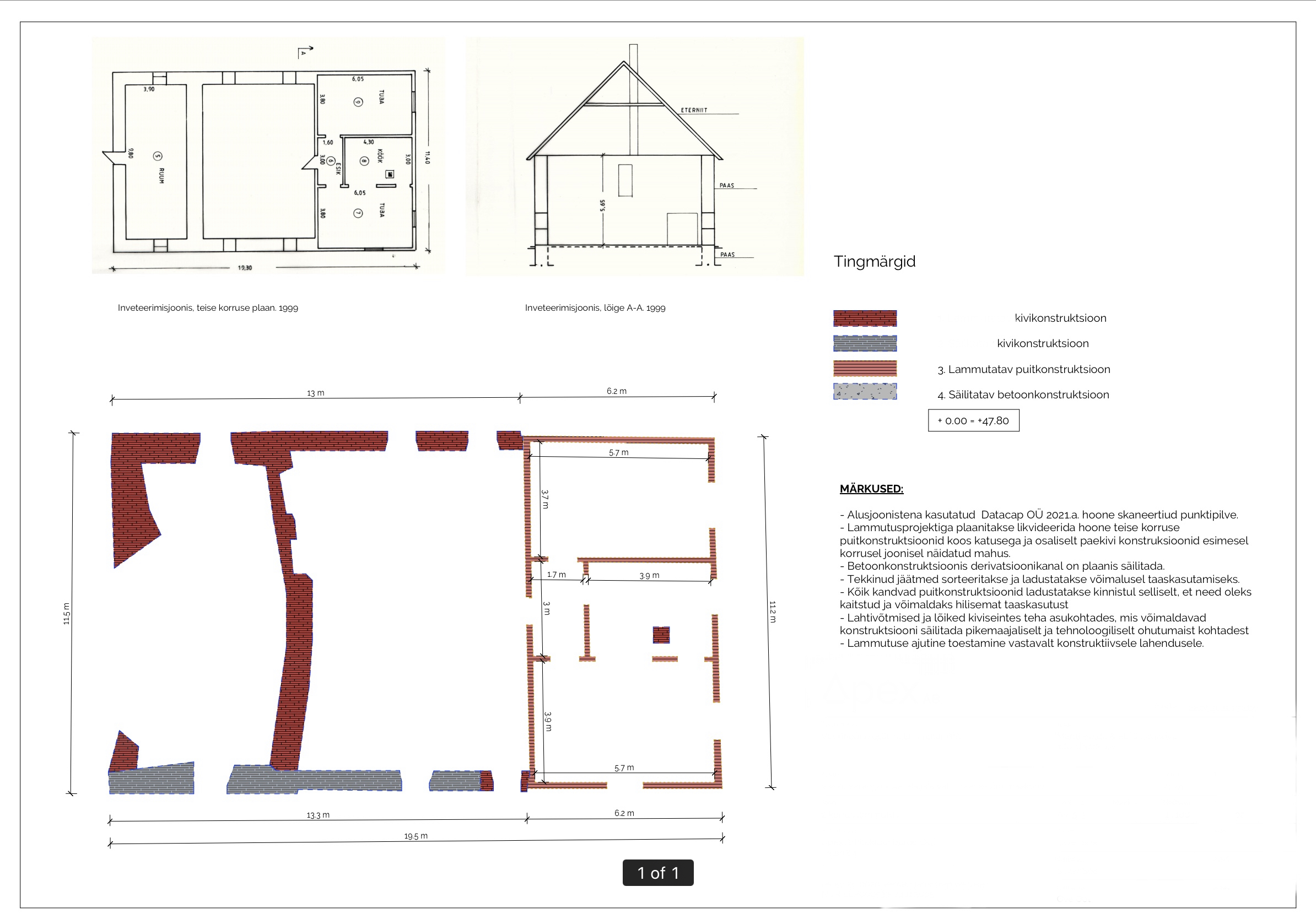 *8. Peale rusude varistamist ja esimese korruse tühjendamist lammutatakse esimese korruse vahelagi koos vahelae taladega. Lae talad säilitatakse ja