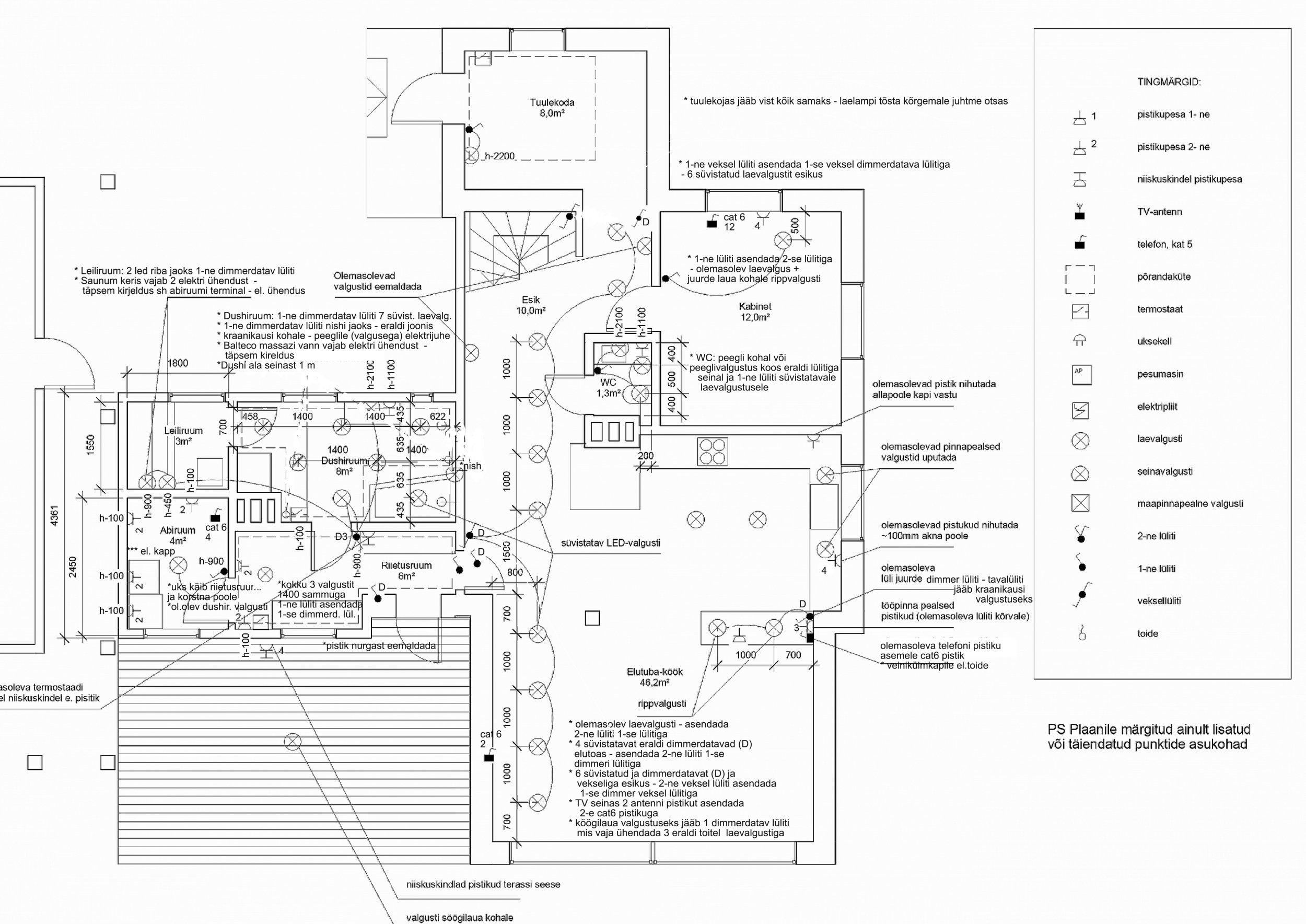 Skeem lisatud, mida vaja muuta või lisada olemasolevas eramus. Skeemil ei ole olemasolevaid pistikuid ja ca 4 valgustit.