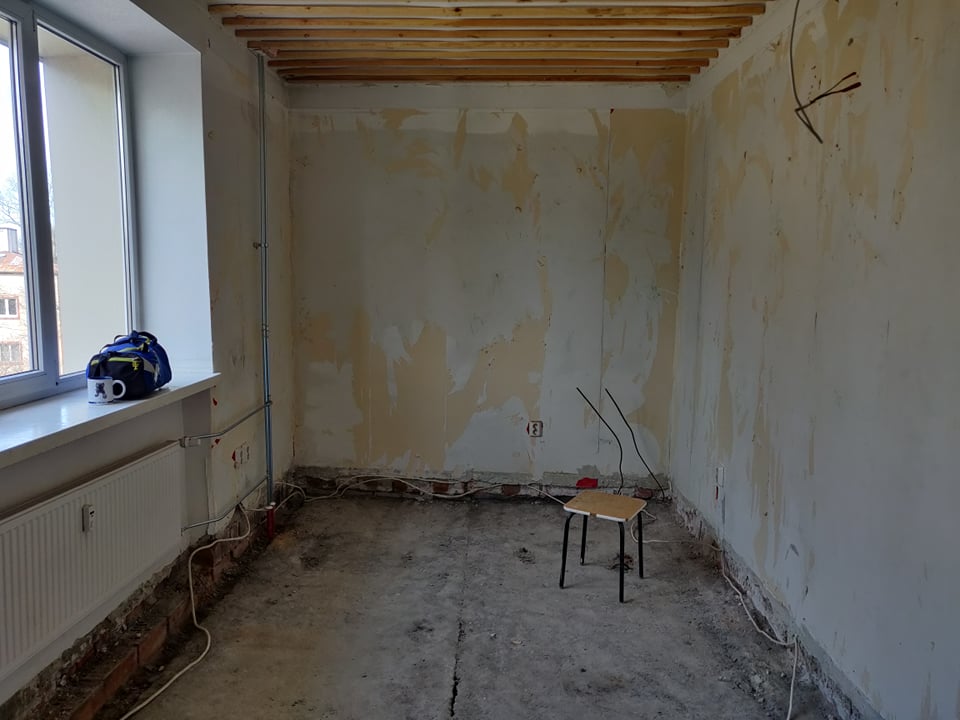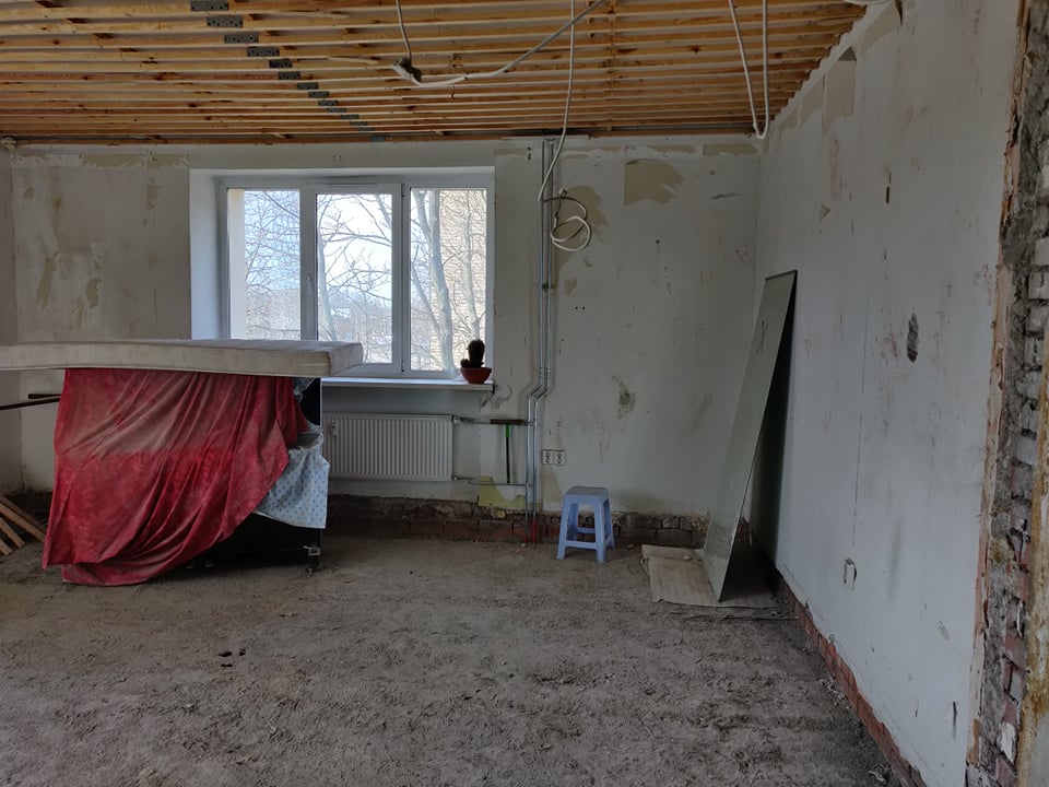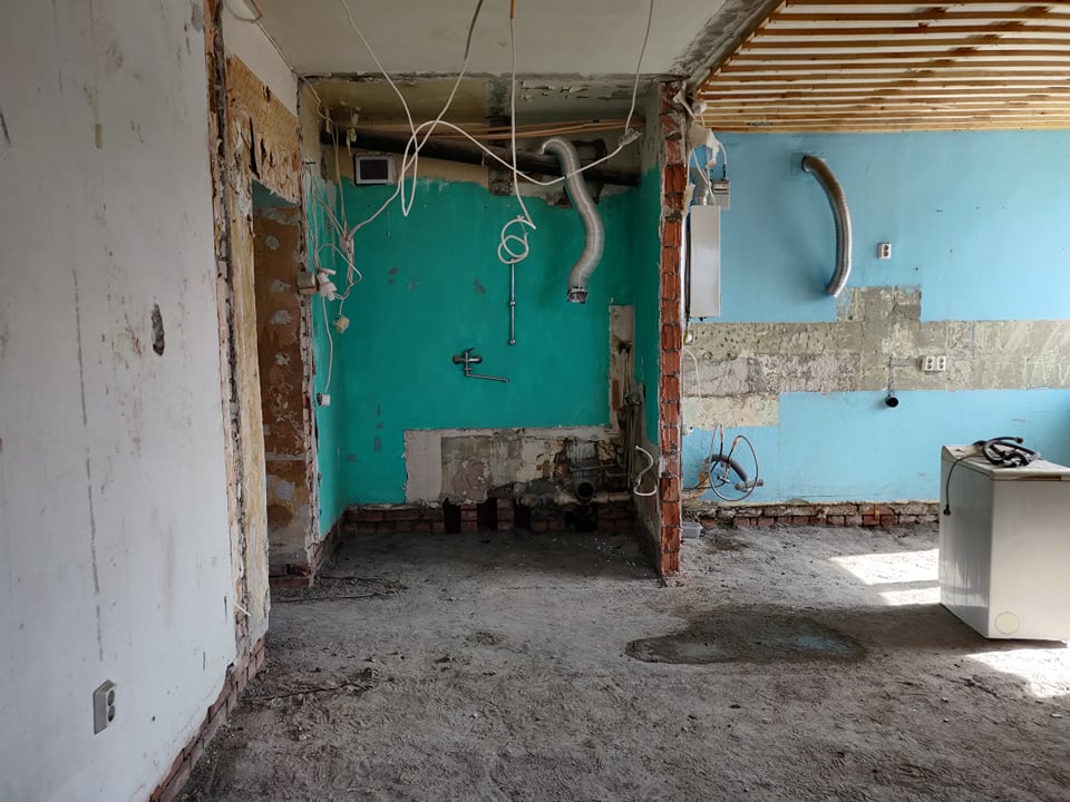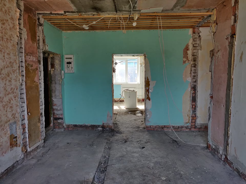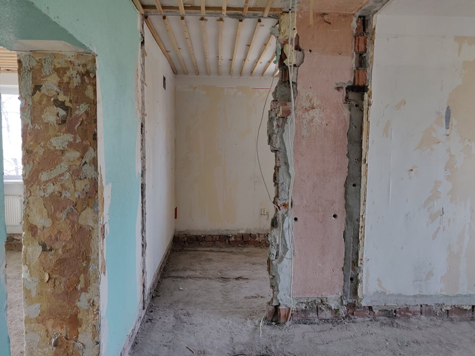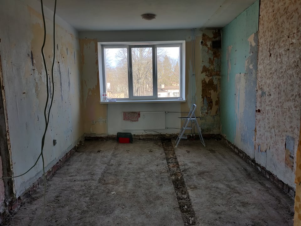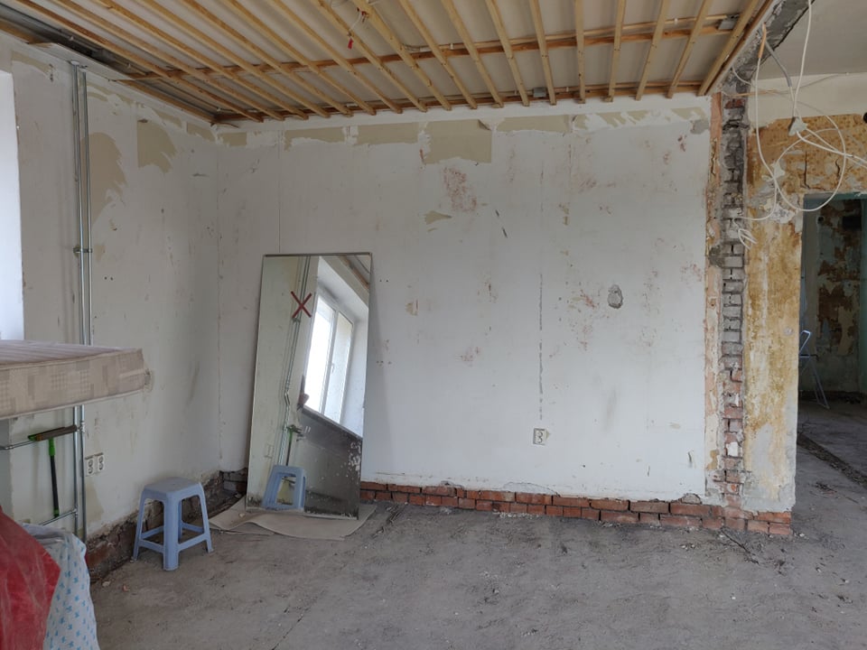 Korter on hetkel tehtud nn "puhtaks" ning oleks vaja uuesti üles ehitada - panna uued põrandad, ehitada tagasi vaheseinad, teha kandvasse seina ukseava (vastav projekt selleks on loodud arhitekti ning inseneri poolt, mida saaksin jagada edasise konsultatsiooni puhul; joonisel 1 märgitud rohelisega).