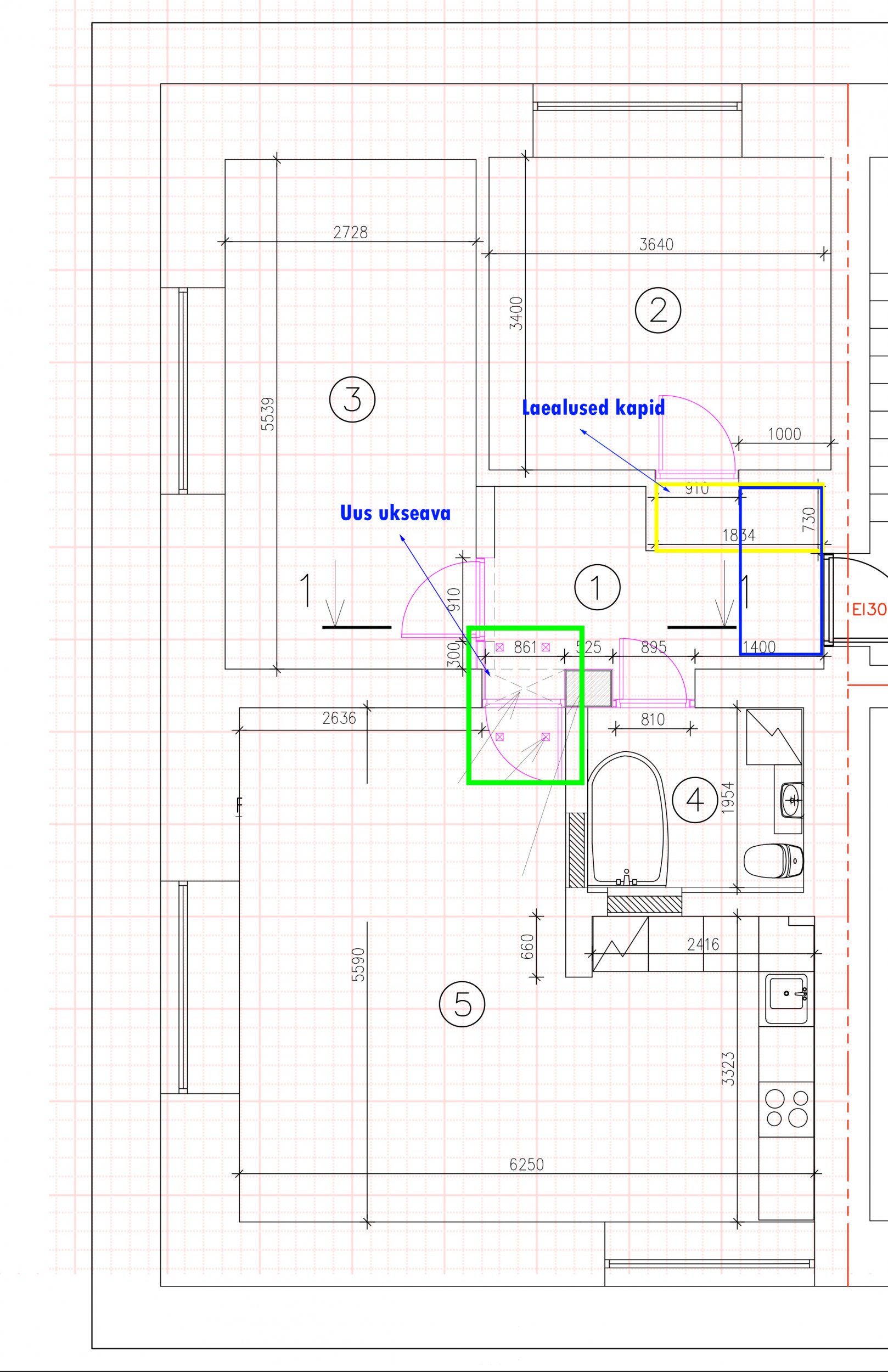 Lisatud mõned pildid. Joonisel 1 on soovitud tulemuse plaan; Joonisel 2 on korteri hetke situatsioon (seinad mis on hetkel puudu on ära markeeritud); lisaks ka paar pilti korteri hetke olukorrast.