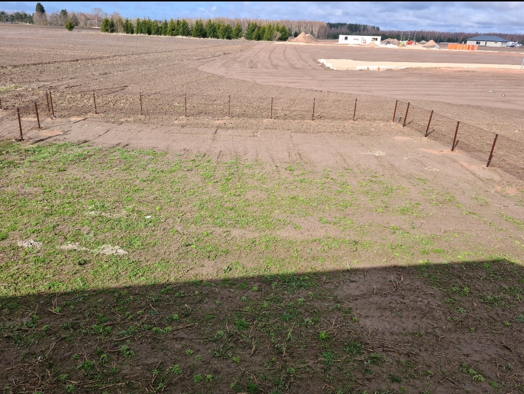Vaja vedada 5cm mulda peale, täita mõned lohud ja külvata muruseeme. Krundi suurus 1300m2.