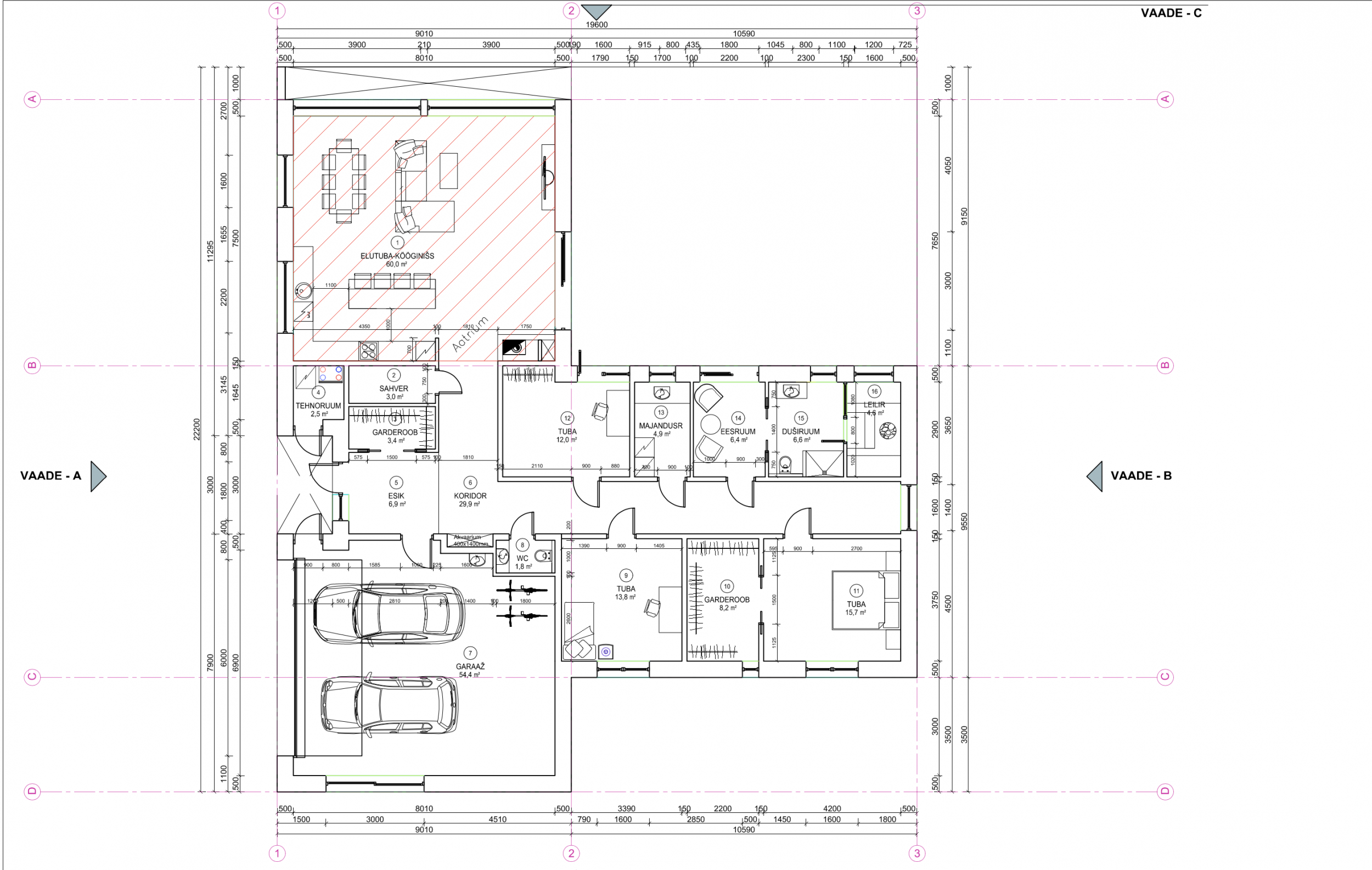 - Plaadi sees on põrandaküte, armeering vastavalt projektile ja kanalisatsiooni torud. -