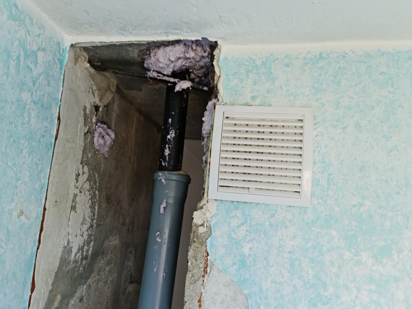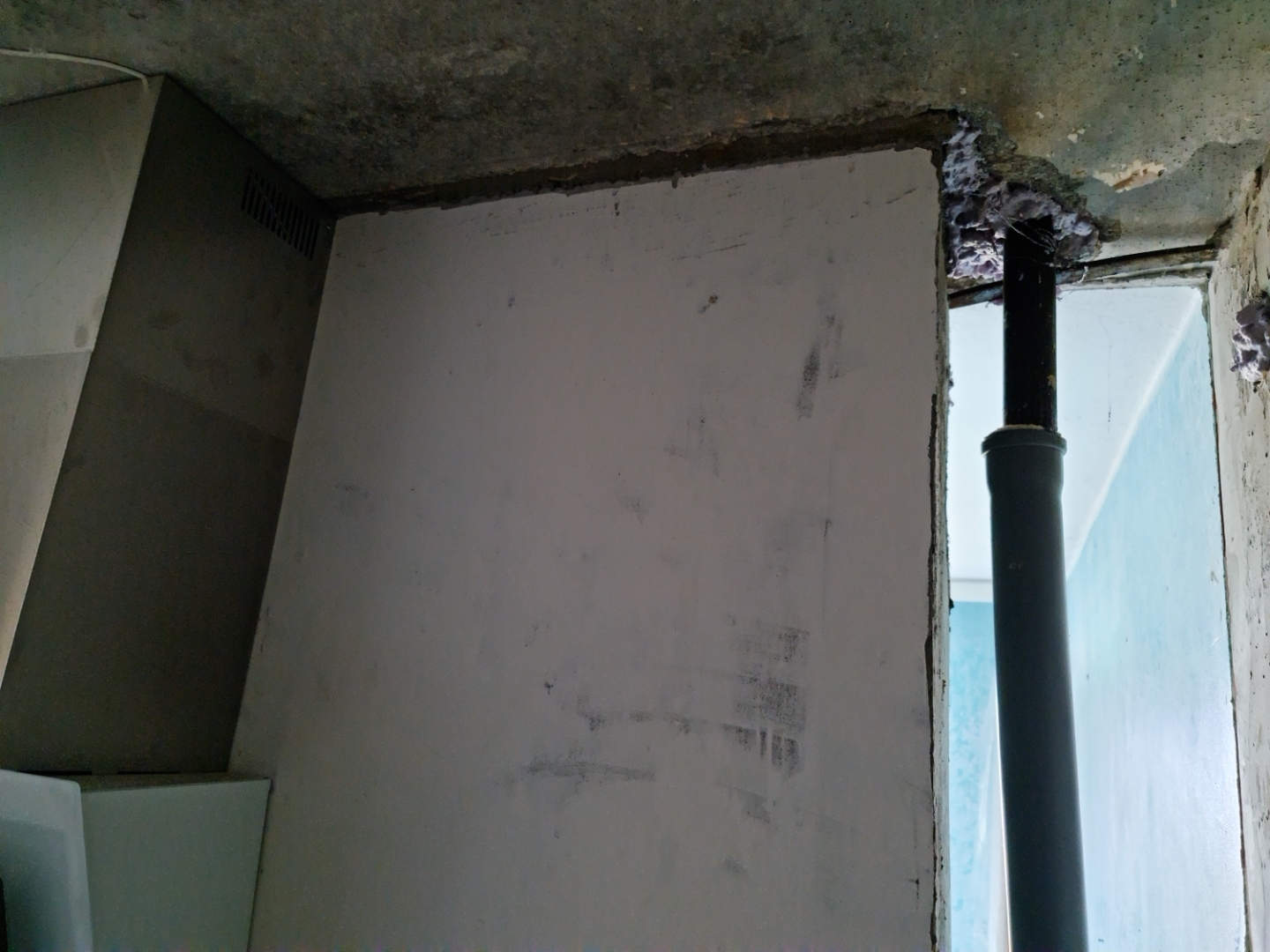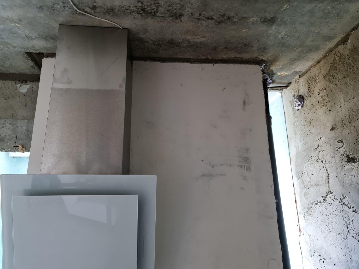 Köögikubu ühendamine maja ventšahtiga. Hetkel kubu paigutatud seinale ühendamata kujul. Olemasolev ava seina pöördel. Lahendus võib olla nii uue ventava lõikamisega korterile määratud šahti kui ka ümber seina viimisega varasemasse avausse. Uue ava lõikamisel tuleks arvestada, et korteri ventilatsiooniplokk on kõige parempoolsemas servas (kubu asetseb seina vasakpoolsel serval). Otse olemasoleva kubu taha augu lõikamine ei ole ühistu poolt lubatud.