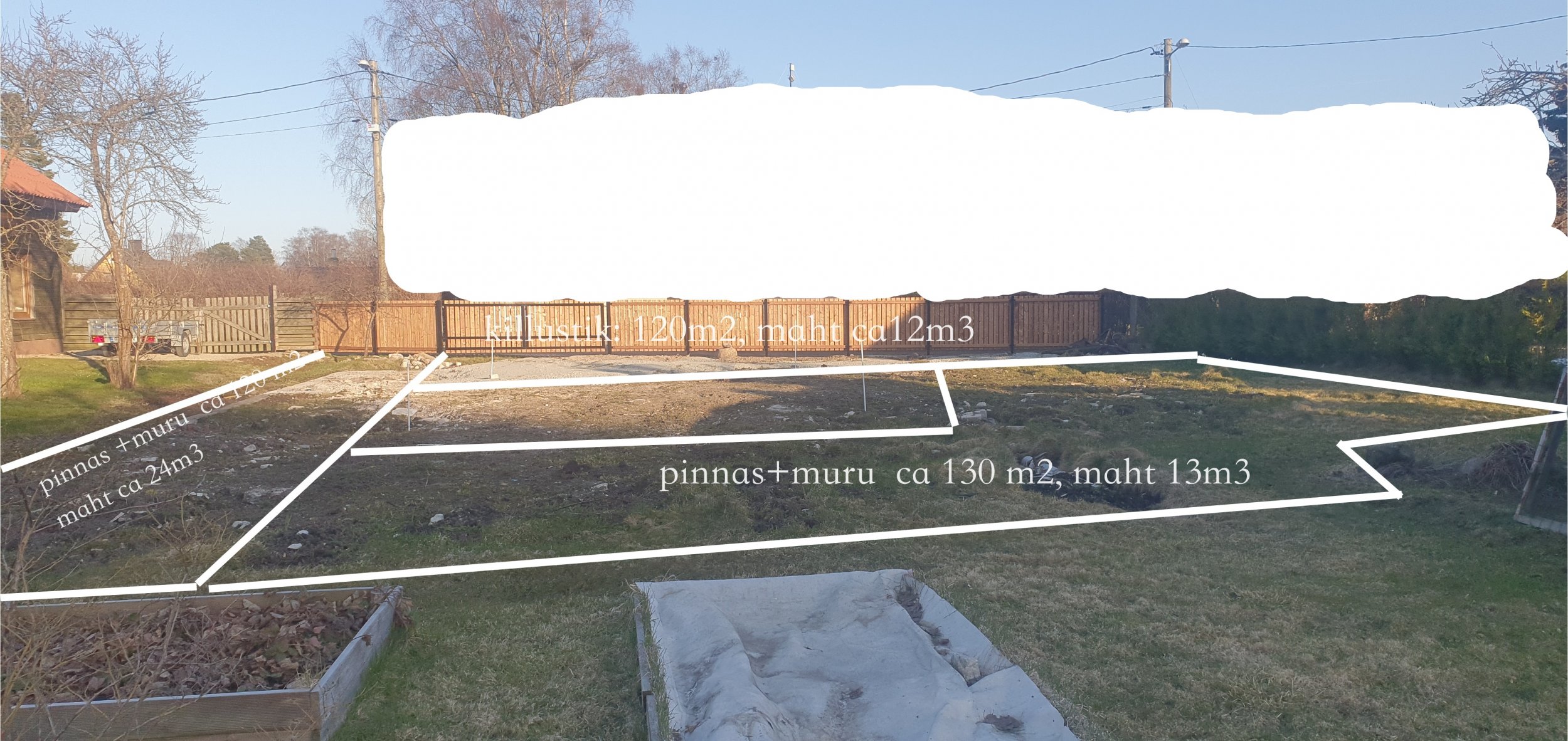 Lammutusjärgne haljastustöö. Kõrgemate kohtade silumine, muld + muru. Parka osa freesasfaltiga