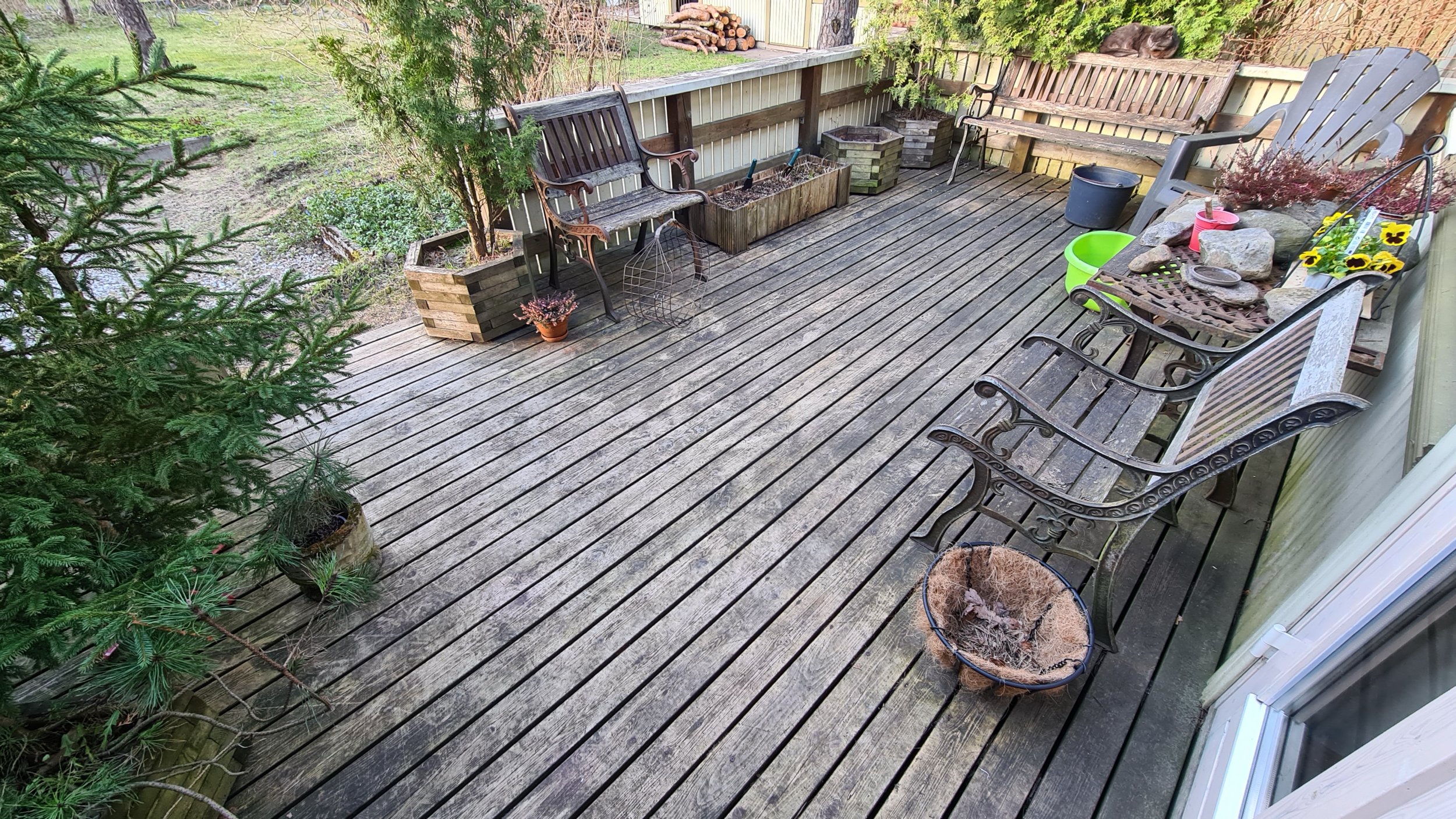 2. Puhastada ja õlitada olemasolev terrass 18 m2 (piltidel)