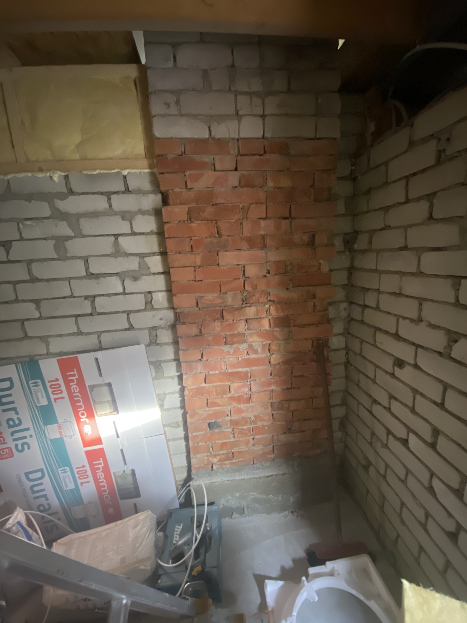 Hinnas tellismüüritise lõpetamine koos materjaliga. Kerise lõõri hülsi paigaldus koos puhastusava tekitamise ja kerise ühendamiseks kolmiku paigaldusega. |