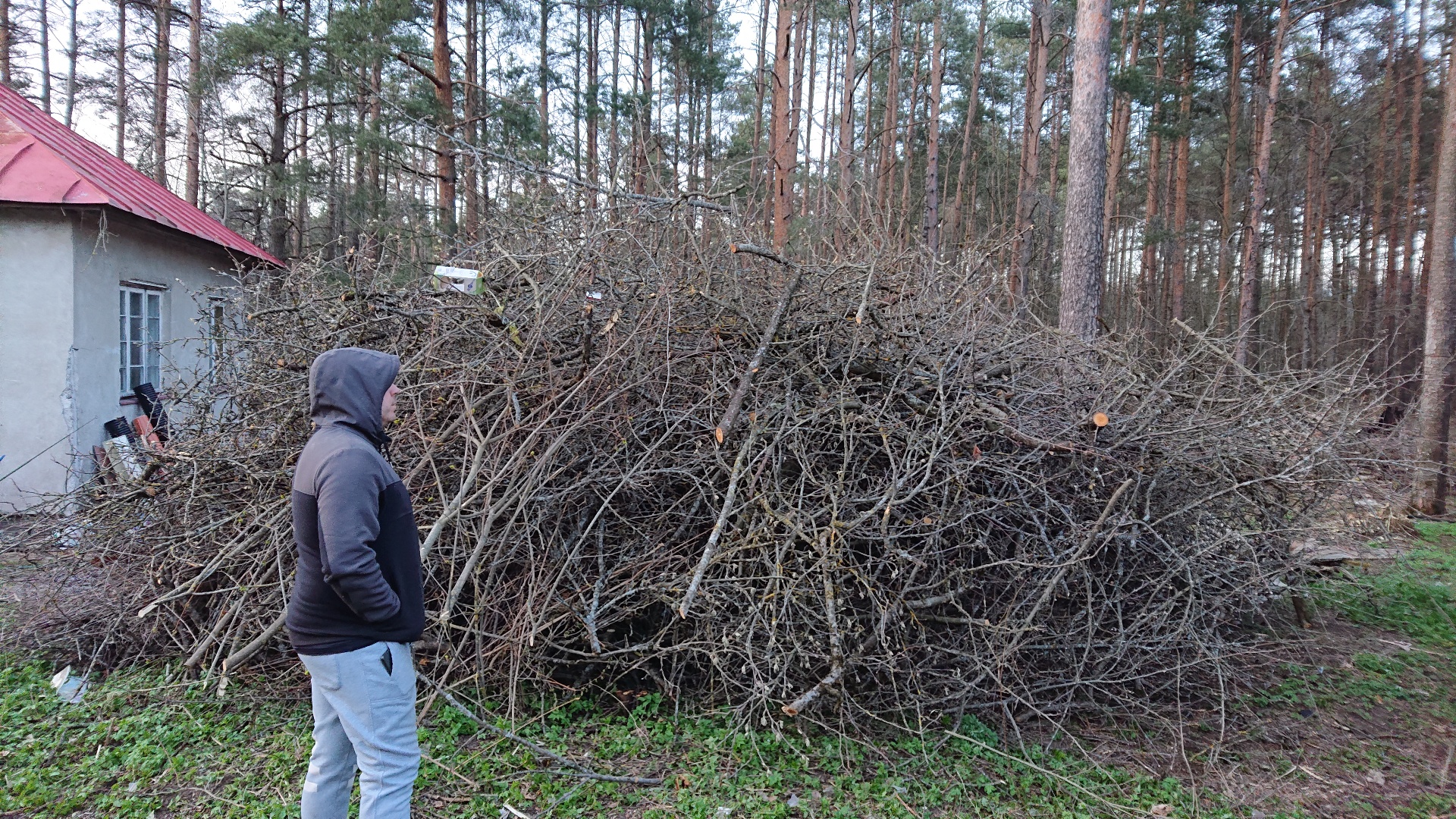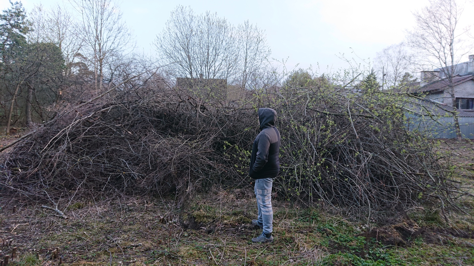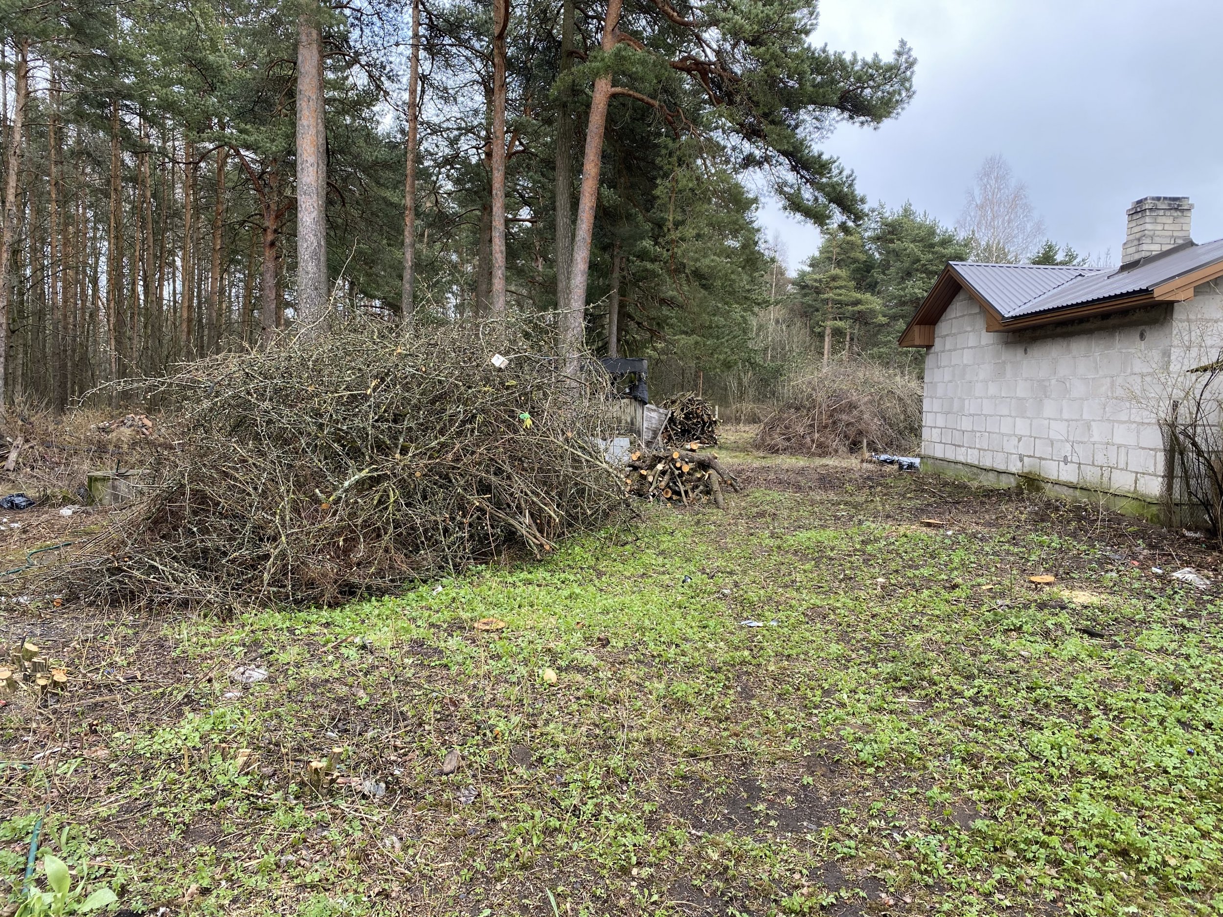Vaja ära viia või purustada 4 kuhja oksi/võsa. Hakke võib jätta krundile kuid võib ka ära viia.