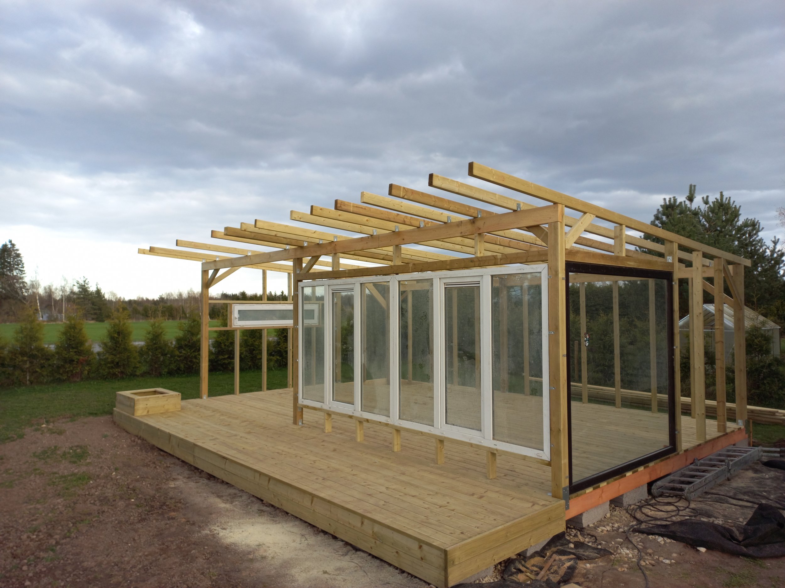 Vaja lihtsa aiamaja projekti. 6m*7,5m ja eest 2,7m tgant 2,3m kõrge. Kahel küljel suured aknad. Suletud pind 34rm ja ees terass 1,4*7,5m.