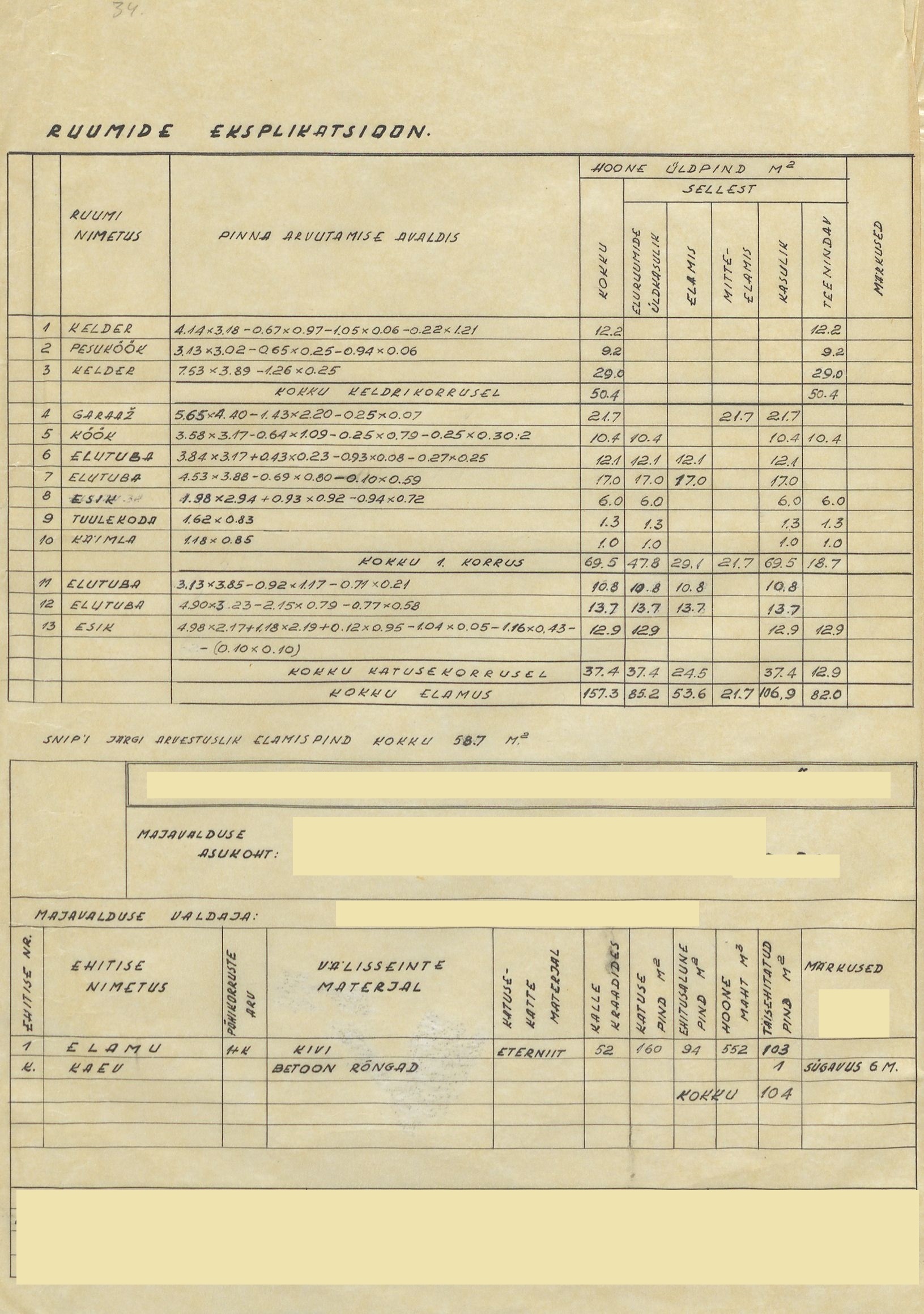 | Ehitusmaterjalid: | Töö tegija poolt |