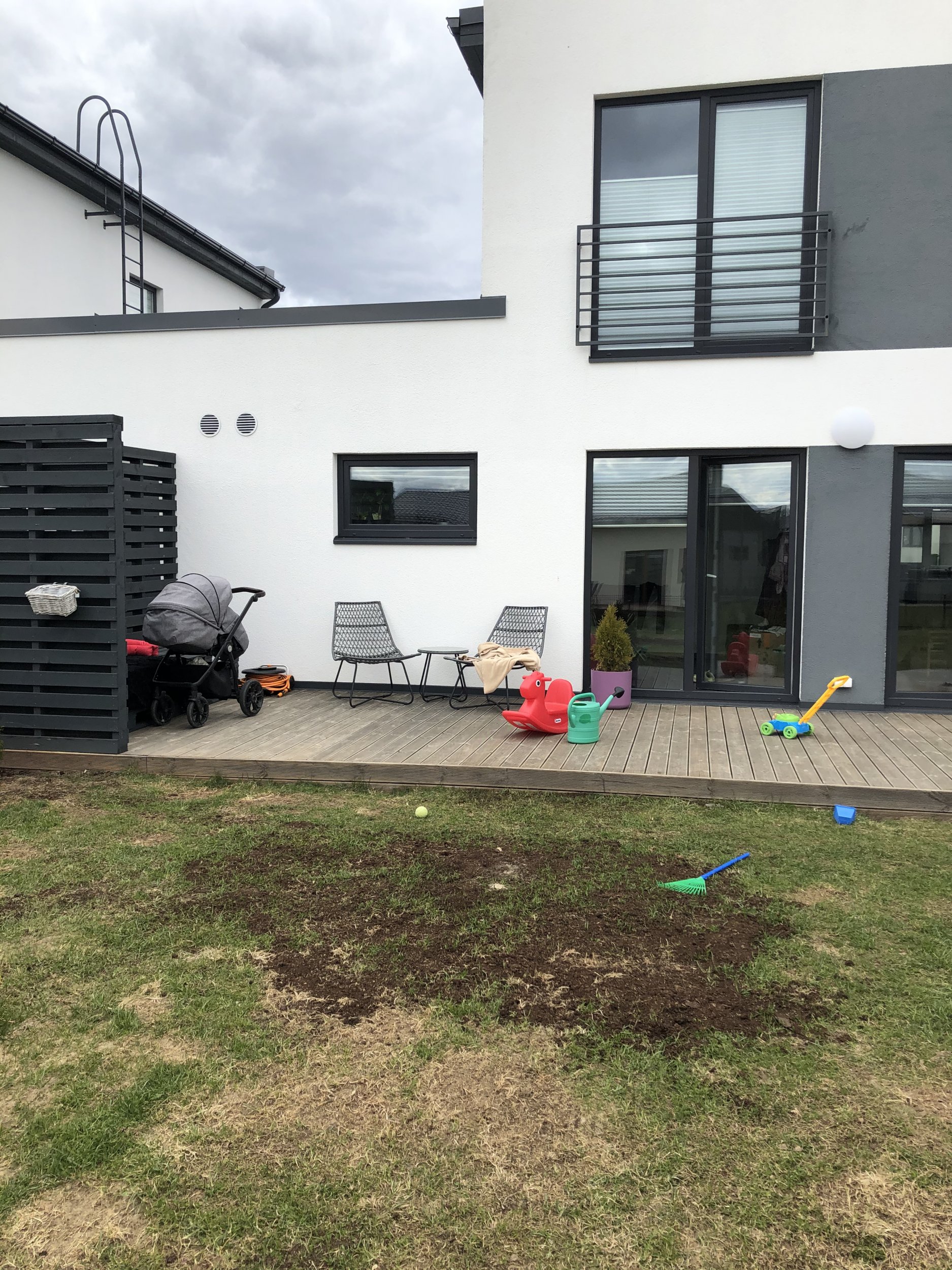 Terrassi peale katuse ehitus. Laius ca 5,7m ja pikkus (väljaulatuv osa ca 3m), ehk siis katuse osa ca 18m2. Lisan ka pildi naabrite katusest ehk siis sarnast, mida tahaks, ja lisan ka enda terrassi pildi, kuhu katus tuleb.