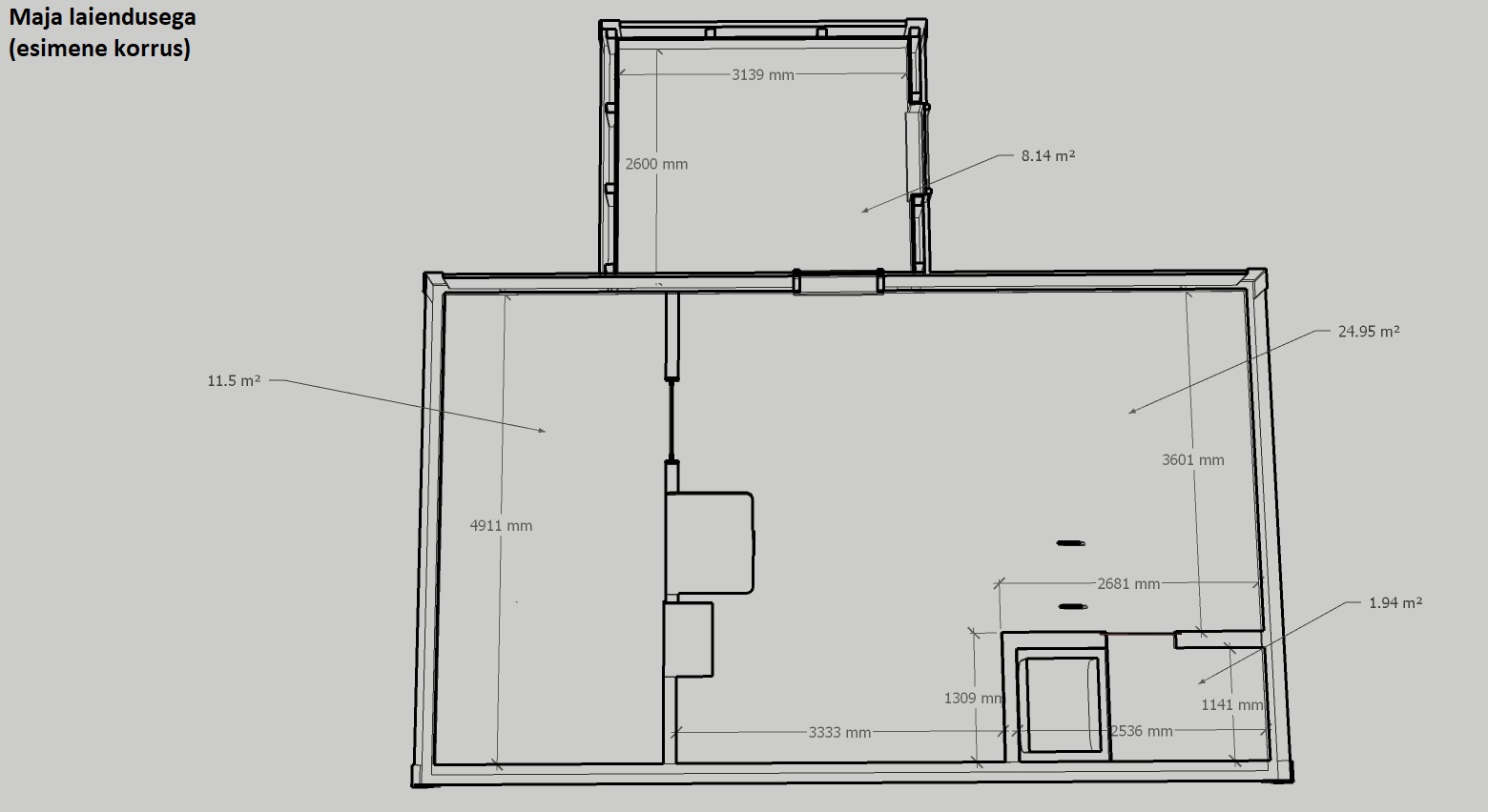 Mõõtsin maja üle ja tegin maketi maja hetkeseisust ja millised muudatused on plaan majale teha.