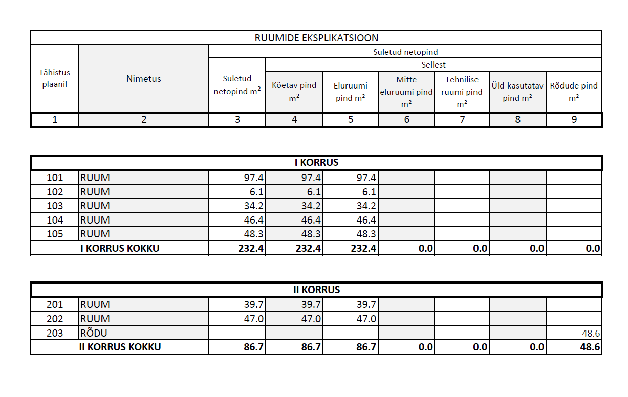 Lisatud dokumendid: Hoone mõõdistus, fotod, kalkulatsiooni põhi.